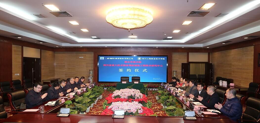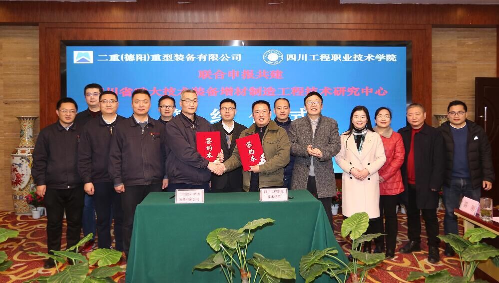 1月6日上午,我校与二重(德阳)重型装备有限公司(以下简称“二重重装”)联合申报共建“四川省重大技术装备增材制造工程技术研究中心”合作协议签约仪式在学校图书馆108会议室举行。二重重装总工程师、科协主席郑建能一行6人,学校副院长郭杰,学校特聘教授、原二重副总工程师陈晓慈,科研与社会服务处处长张宗书以及学校各省级工程实验室代表出席签约仪式。仪式由郭杰副院长主持。