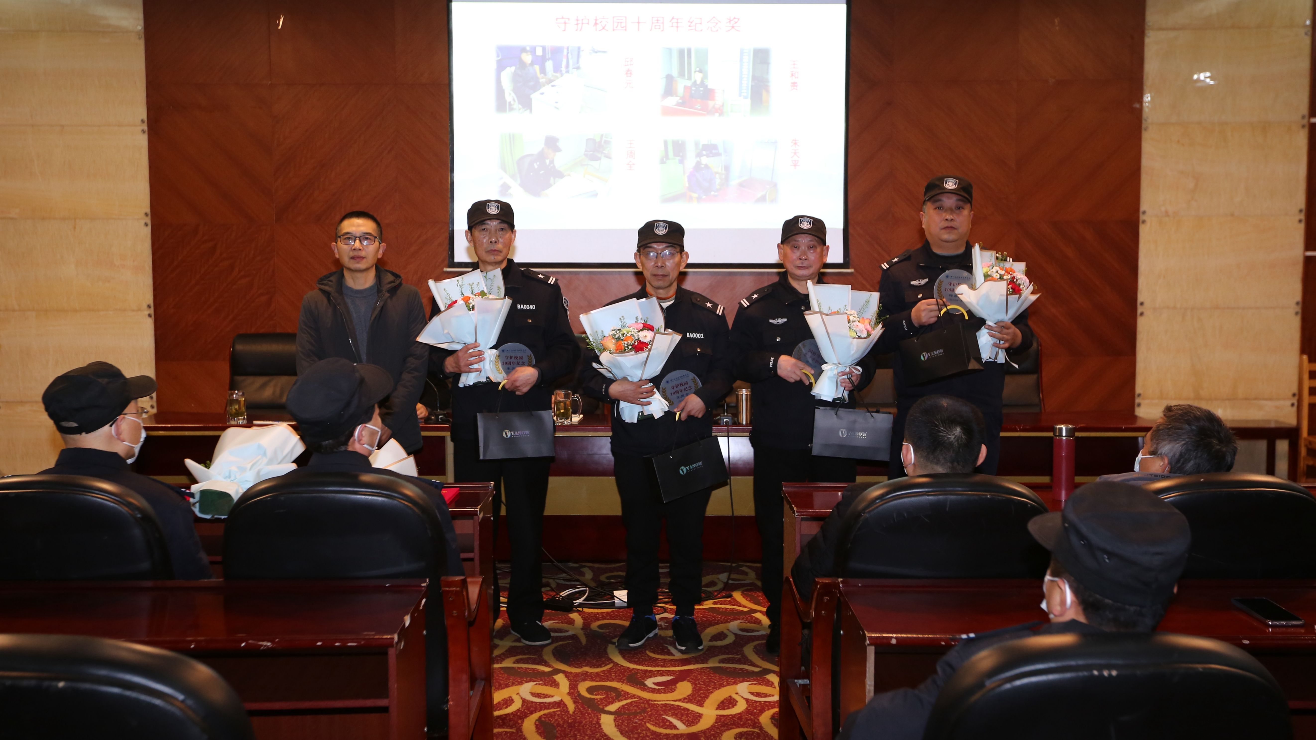 会上,党委武装部部长、保卫处处长侯勇就部门2022年的工作向全体参会人员做了年度总结报告,并对2023年的工作进行了安排。学生服务党总支廖秀勇书记为保卫处对2022年度“先进个人”颁发了荣誉奖状。向桢副院长为在学校服役十年的员工颁发了特别纪念品和鲜花。先进个人代表蔡青松、服役十周年员工代表王周全分别发言,感谢学校对他们的关怀,并表示今后将继续努力工作,全心全意为师生服务,确保校园的安全稳定。