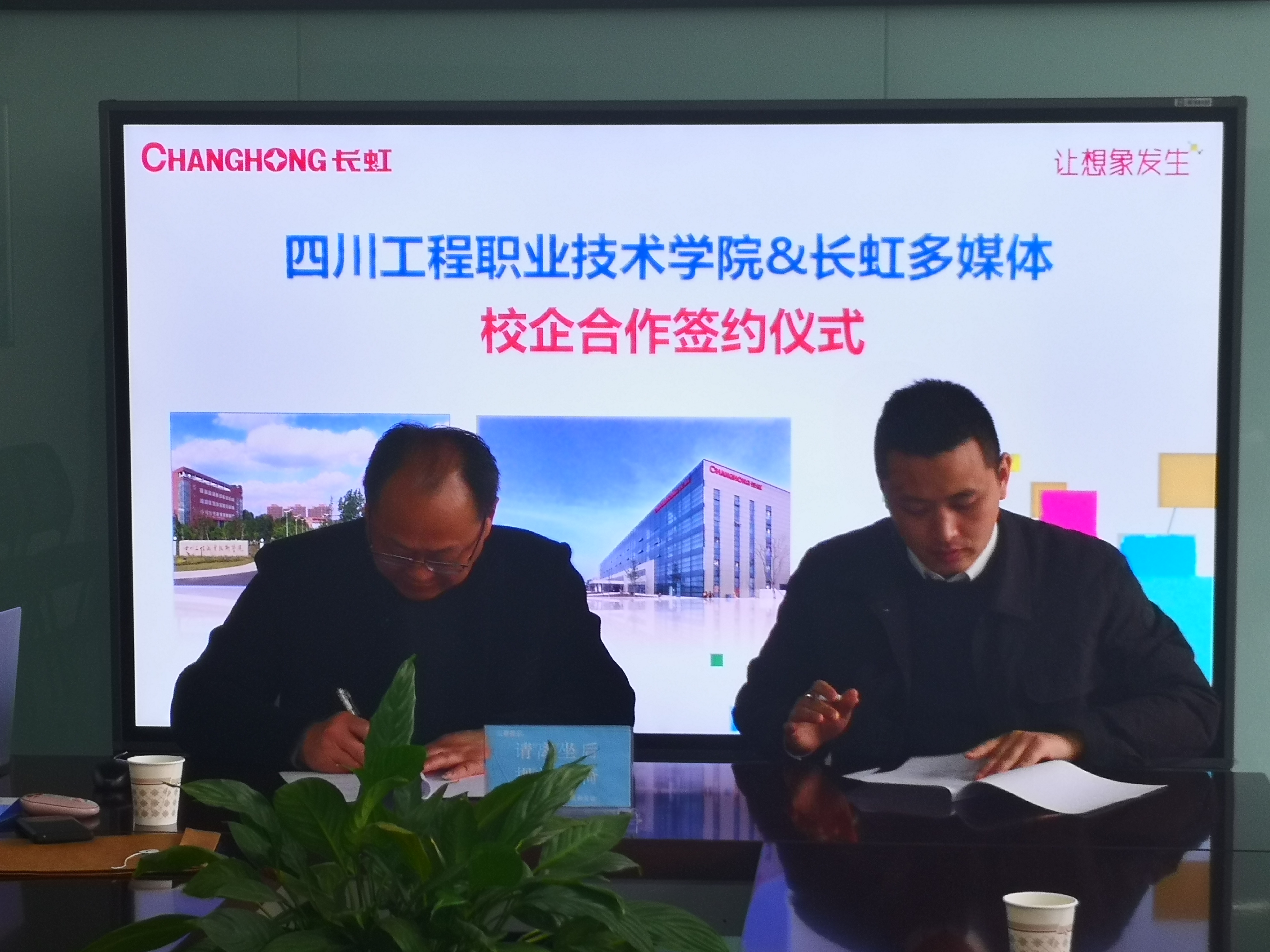 期间,学校与长虹多媒体公司就实习基地建设、现场工程师人才培养计划、双师队伍建设、校企协同科研与技术创新等几个板块进行了交流与探讨,并在会上达成战略合作意向。