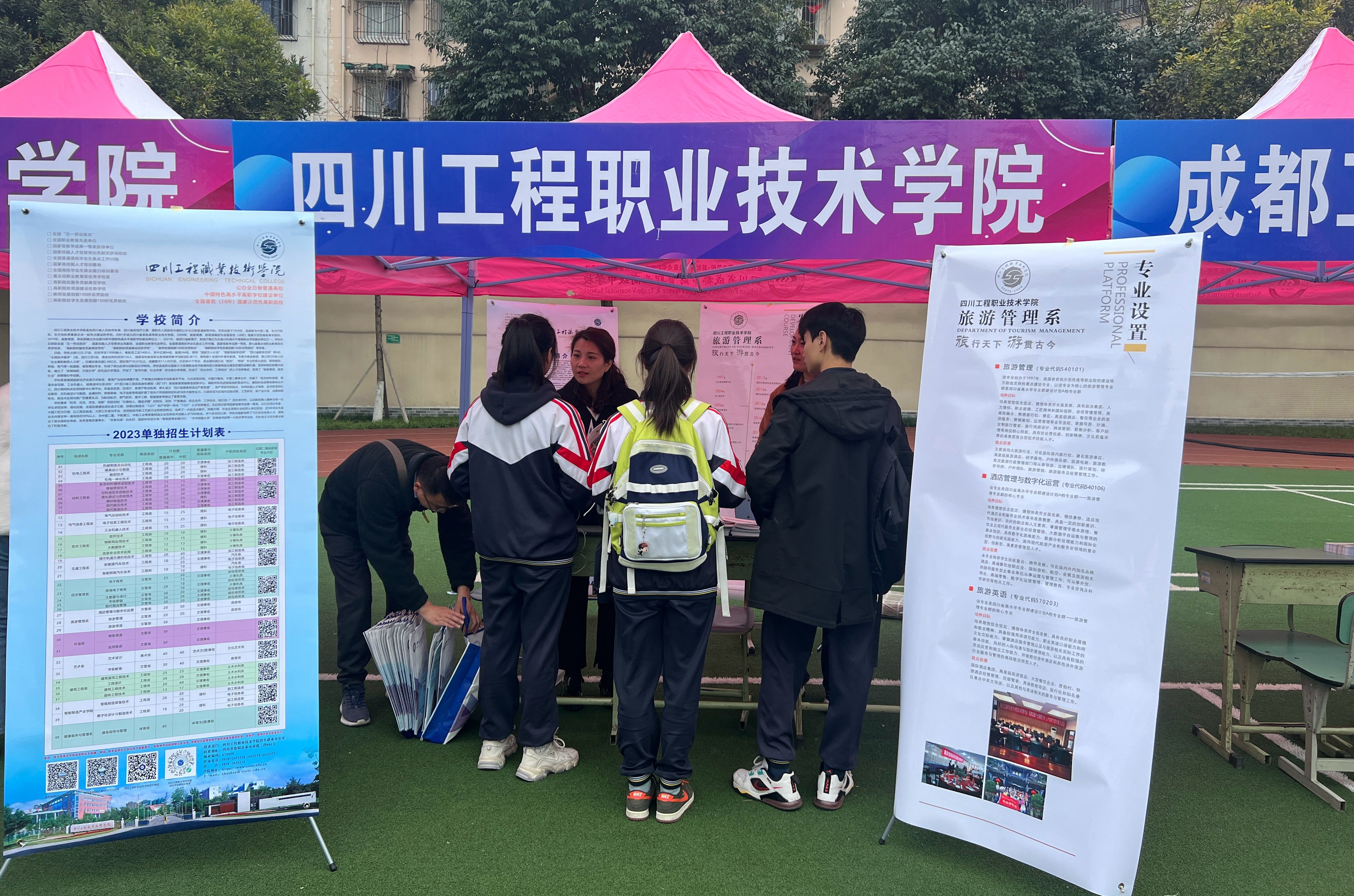 2023年2月28日,受四川省成都市财贸职业高级中学邀请,旅游管理系张伟主任带队携手学校招就办前往该校参与单招宣传活动。春意盎然,微风和煦,莘莘学子怀揣着对未来的憧憬,他们眼神里是满满的专注与热爱。通过此次单招宣传活动,让部分同学充分了解了我系的办学特点、专业设置、招生要求和就业方向等情况,相信能帮助他们在今后更加科学、合理地选择大学,做出适合自己的升学规划。现场师生氛围和谐,取得效果也较好,也通过此次活动拓宽了我系中职招生渠道。(文/图 旅游管理系、招就办)