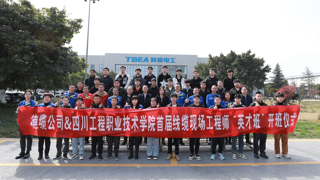 3月1日,我校与特变电工(德阳)电缆股份有限公司(简称:德缆公司)举行了“首届线缆智造现场工程师开班暨校企合作实训基地揭牌仪式”。德阳市旌阳区人力资源和社会保障局副局长曾雯靖,学校党委常委、副院长向守兵教授,德缆公司党委书记、总经理陈保龙,德缆公司人力资源总监黄胜,学校电气信息工程系主任罗光伟教授,企业指导教师(师傅)、工程师班全体学生和参加岗位实习的学生共计100余人参加了开班仪式。