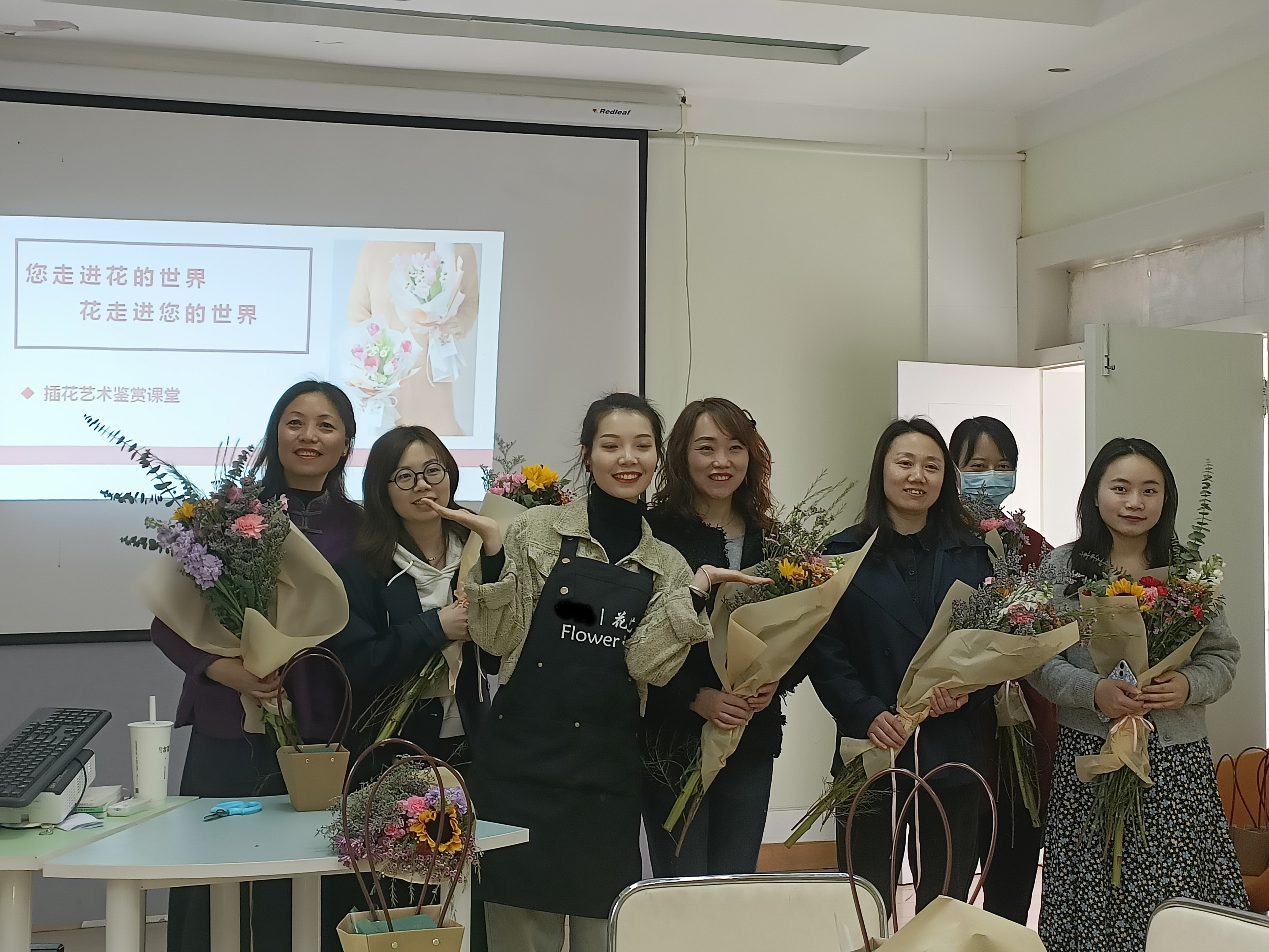 在第113个国际劳动妇女节来临之际,为进一步丰富女职工的精神文化生活,提升女性综合素养,培养艺术品位,加强部门之间的沟通与交流,3月6日下午,学生处和团委共同开展了“三八”妇女节插花艺术鉴赏活动。