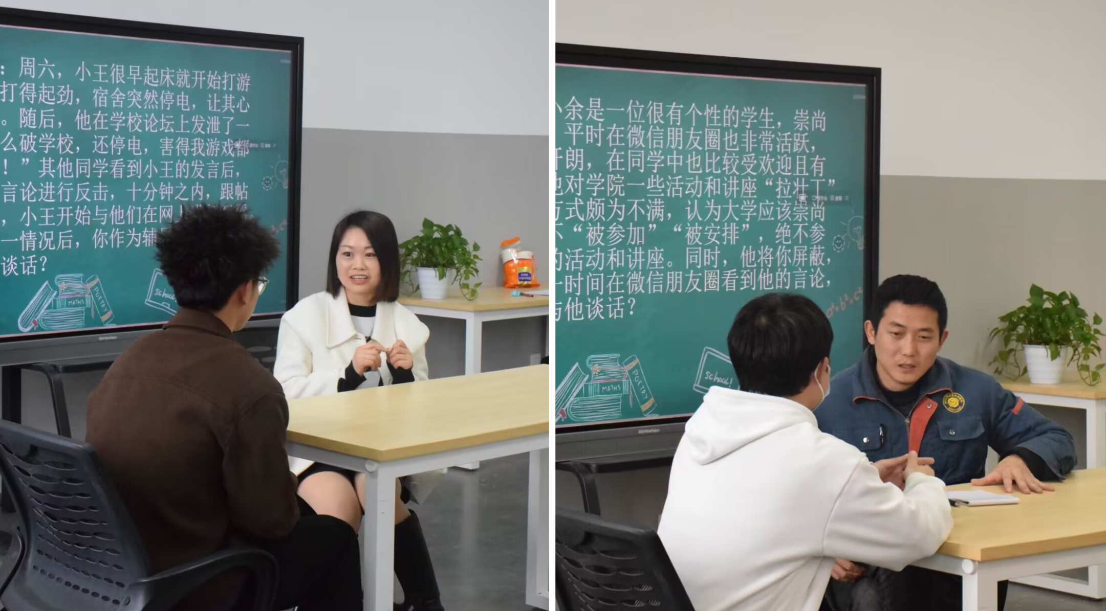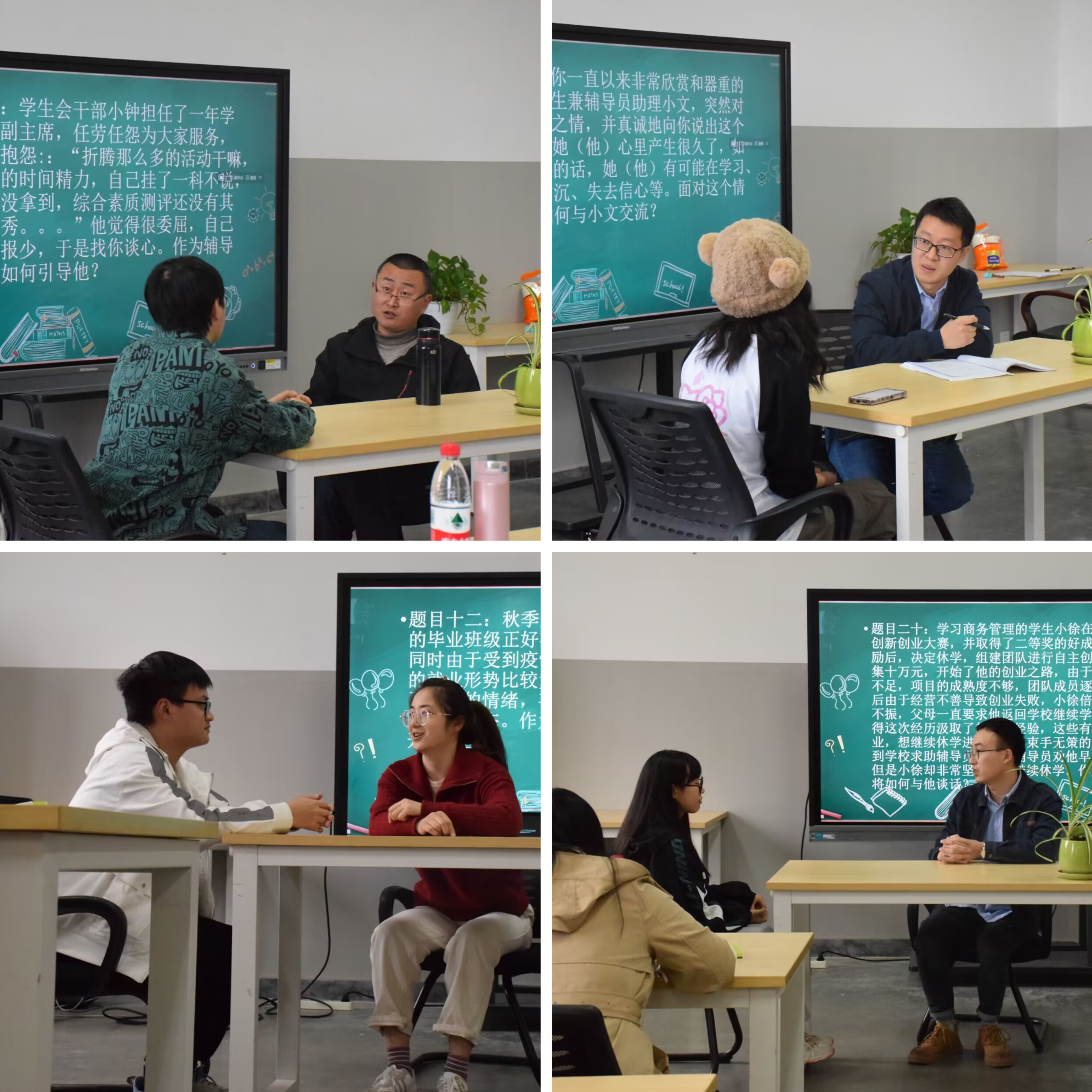 本次比赛为谈心谈话赛项,共15名专兼职辅导员参加。在现场与学生交谈过程中,各位辅导员把握教育规律,结合实际,充分发挥谈心谈话育人功能,帮助学生解决在理想信念、学习、工作、社交、就业、自我认知等各方面的问题。选拔出的优秀辅导员将参加学校辅导员素质能力大赛。