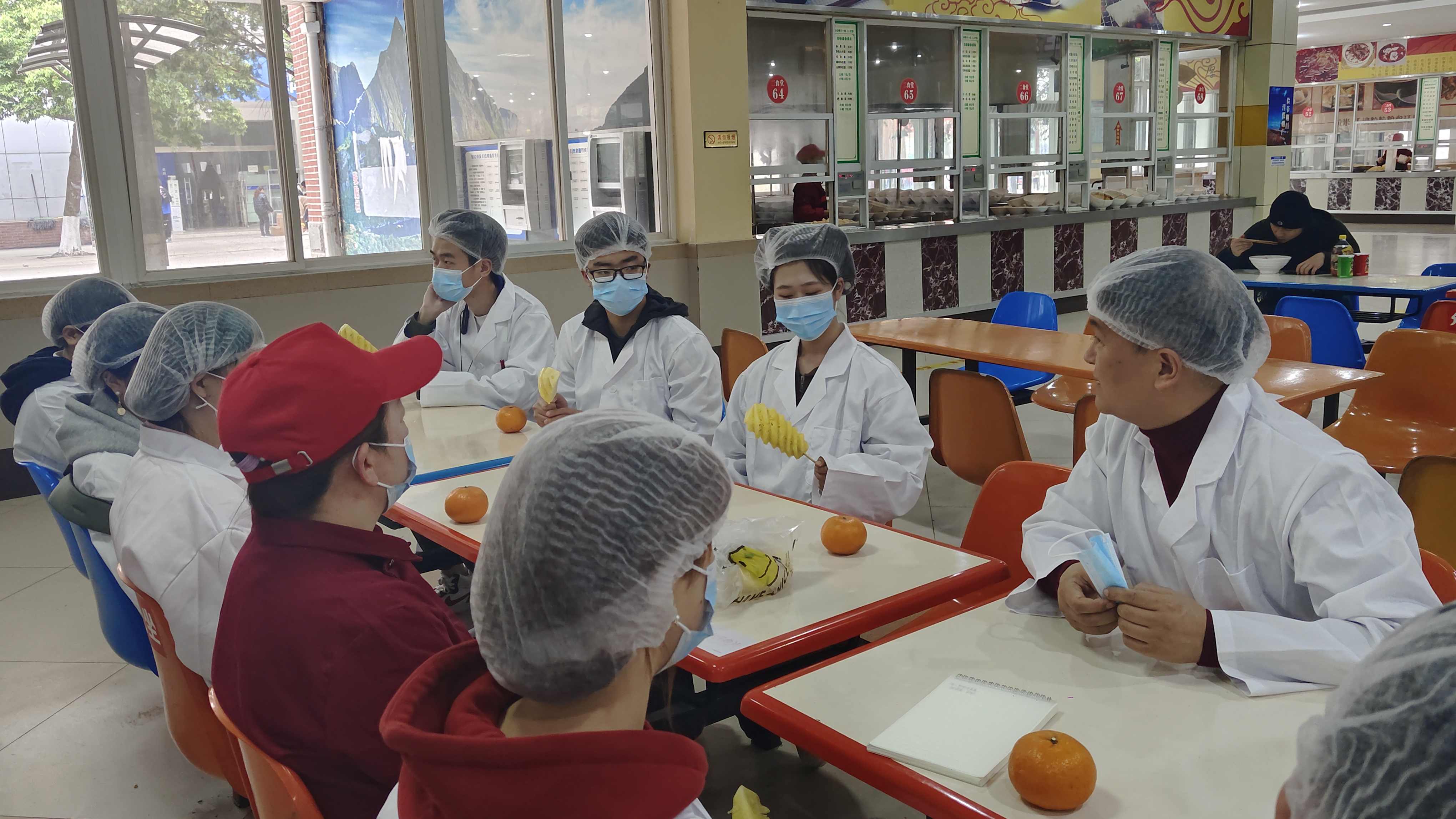 食堂管理员老师从原材料采购、收验货、索票索证、物资储存、加工制作过程、食品留样、环境及工用具消杀、后厨卫生、操作规范、人员作息等方面,详细地给同学们介绍了他们每天吃的可口的饭菜是怎么样一步步从原材料变成餐桌上的美食的:是食堂师傅、阿姨从早上5点多起床起早贪黑为同学们做早餐;是食堂师傅每天变着花样给同学们变换菜品、开发新菜品,以满足同学们不断变化的口味需求;是食堂阿姨每天带着笑脸为同学们服务,为的是让同学们不但要吃得饱、吃得好,而且还要带给同学们心情愉悦。
