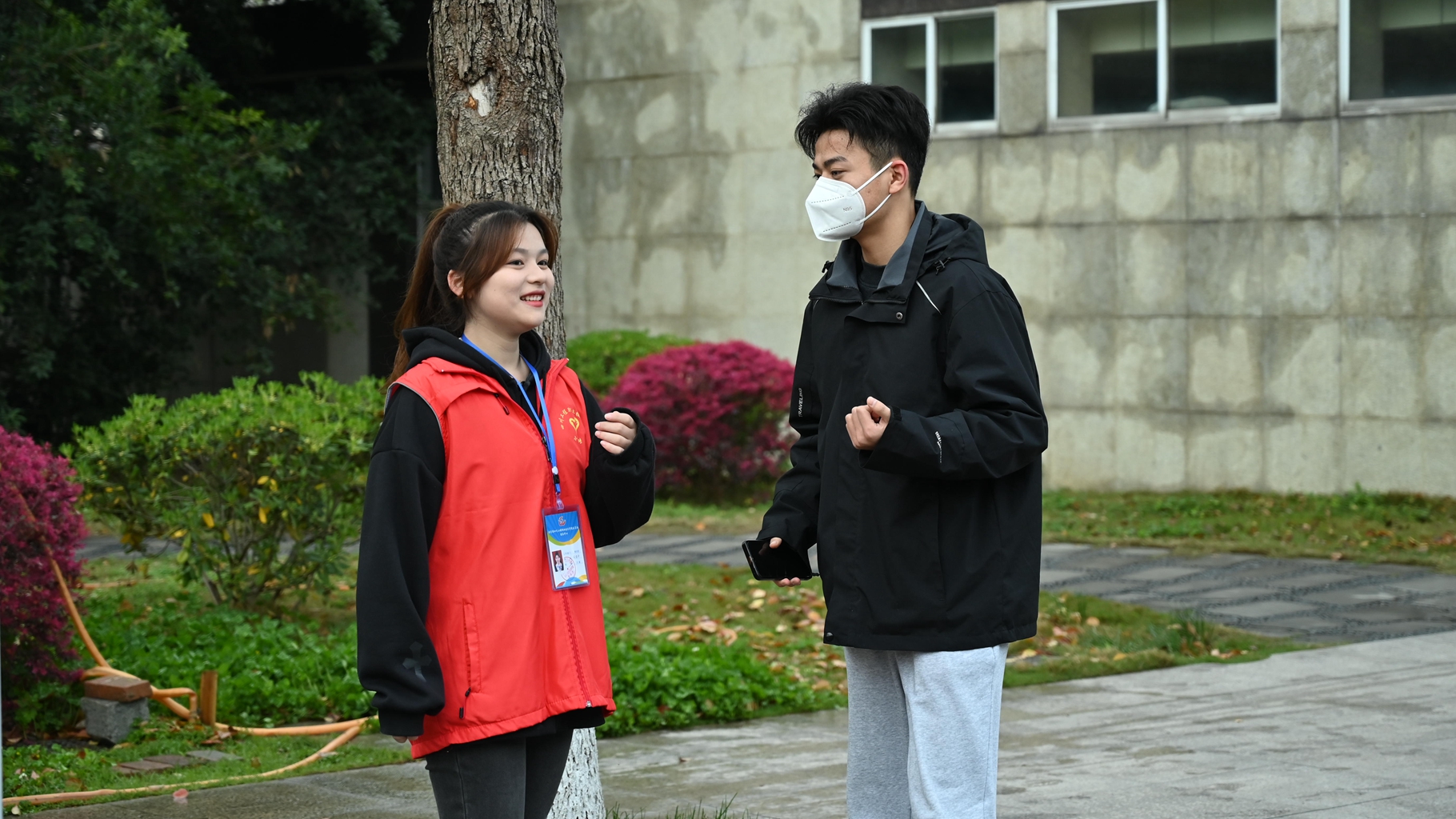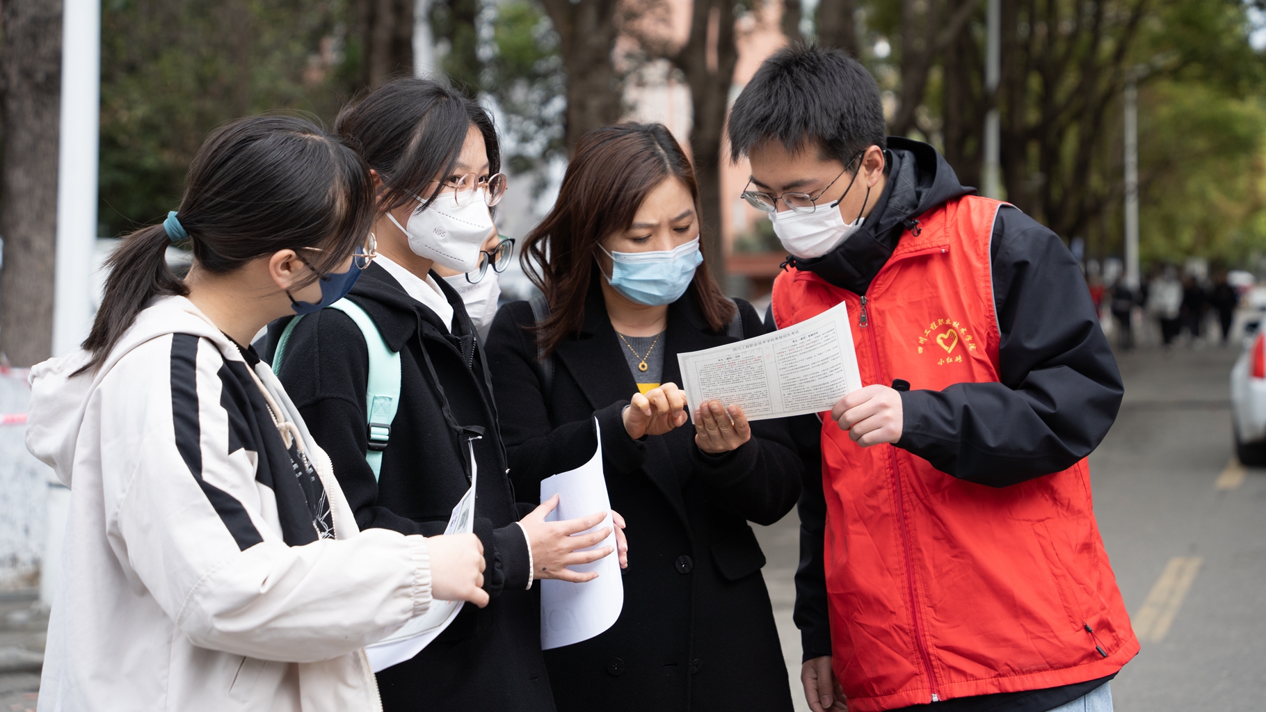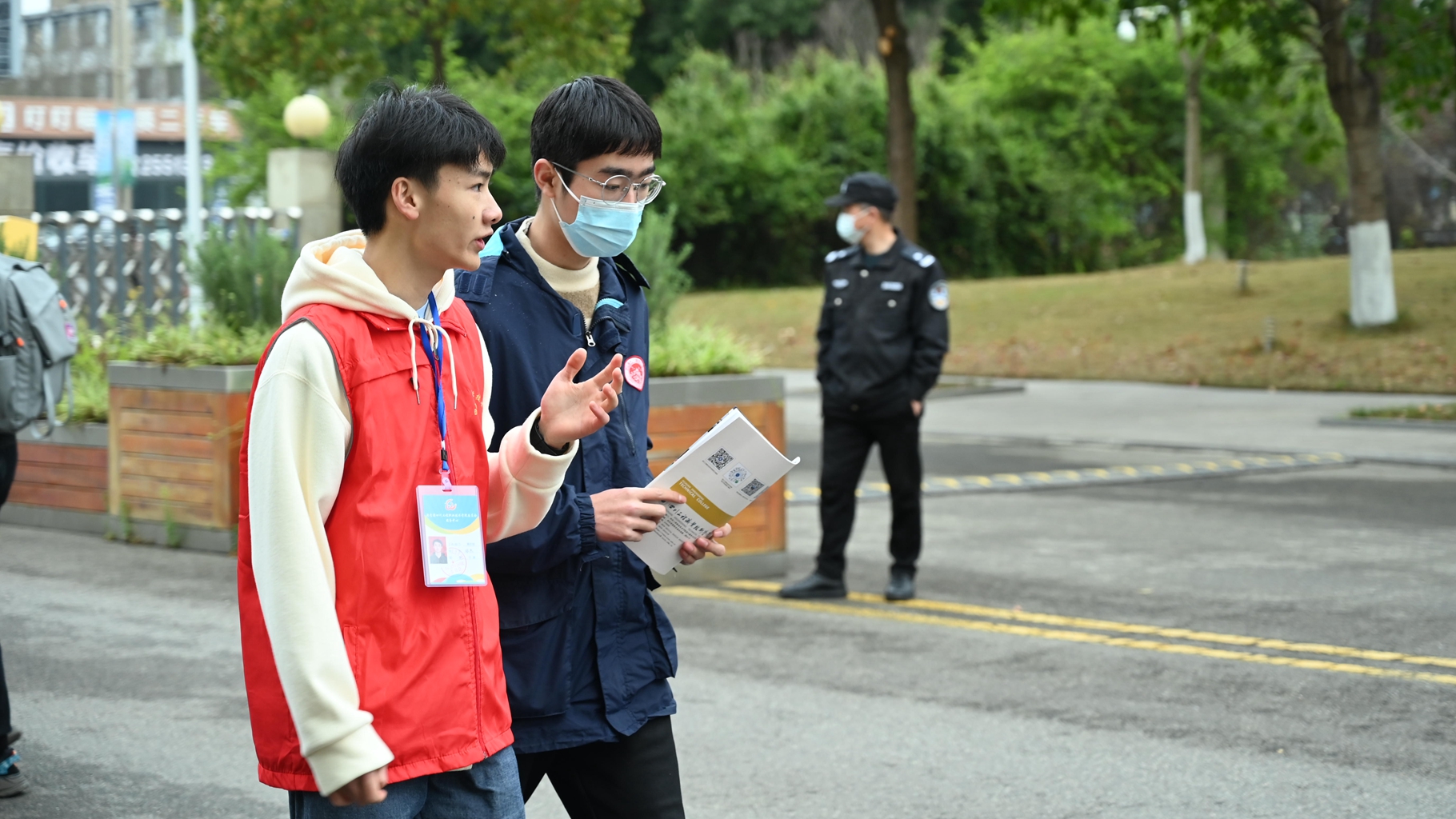 24日一早,志愿者们提前在各自的岗位等待。八点整,二号门准时迎来了第一批家长和考生,他们满怀期待,陌生又好奇地打量着工院的每一个角落。青年志愿者们热情地为考生指引学校的路线,积极引导考生考前报到、寻找考场,并向考生们讲解学校概况、专业设置等情况,舒缓考生和家长的紧张情绪,努力让大家感受到热情和谐的氛围。校园每一处都活跃着那一抹暖心的“志愿红”。