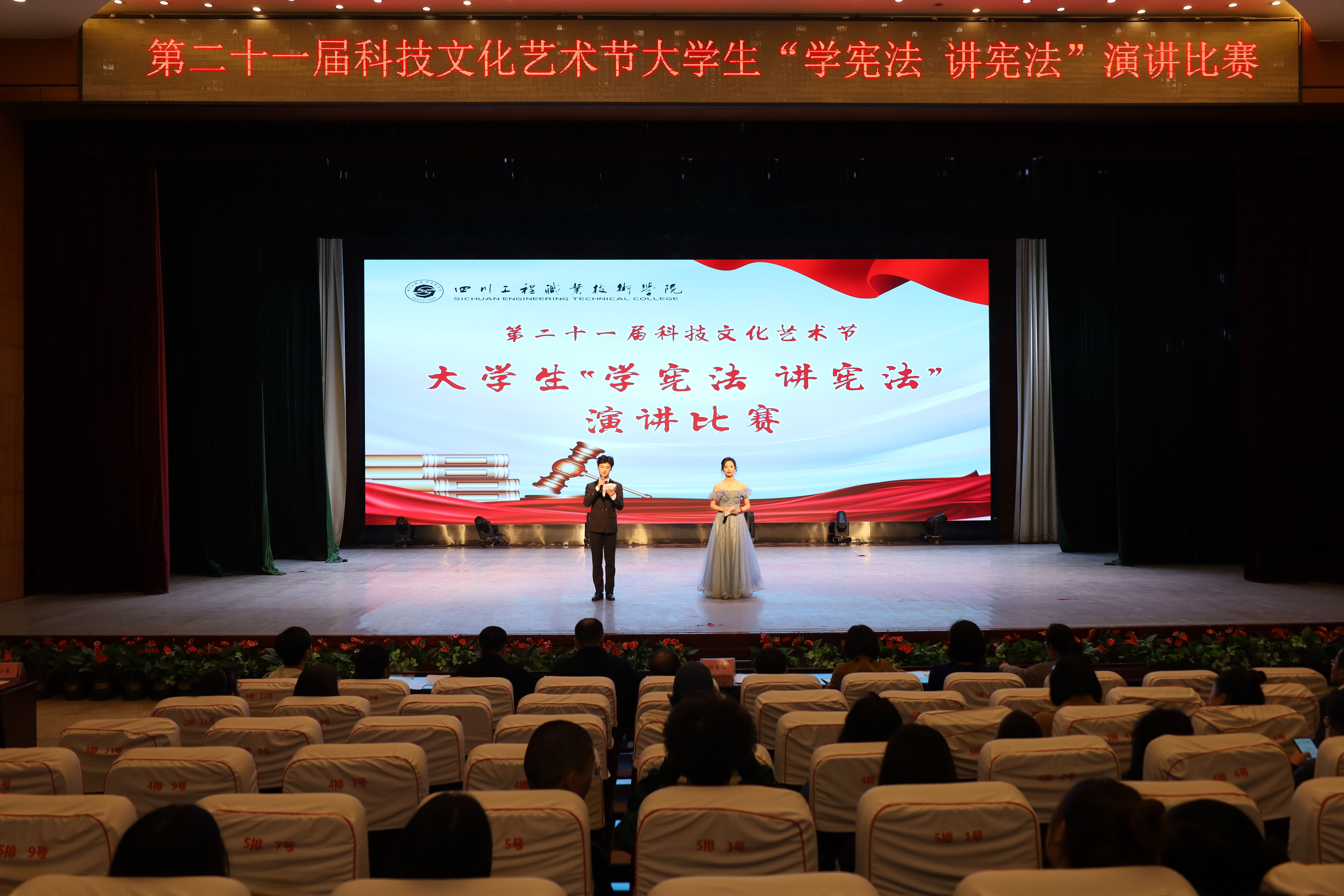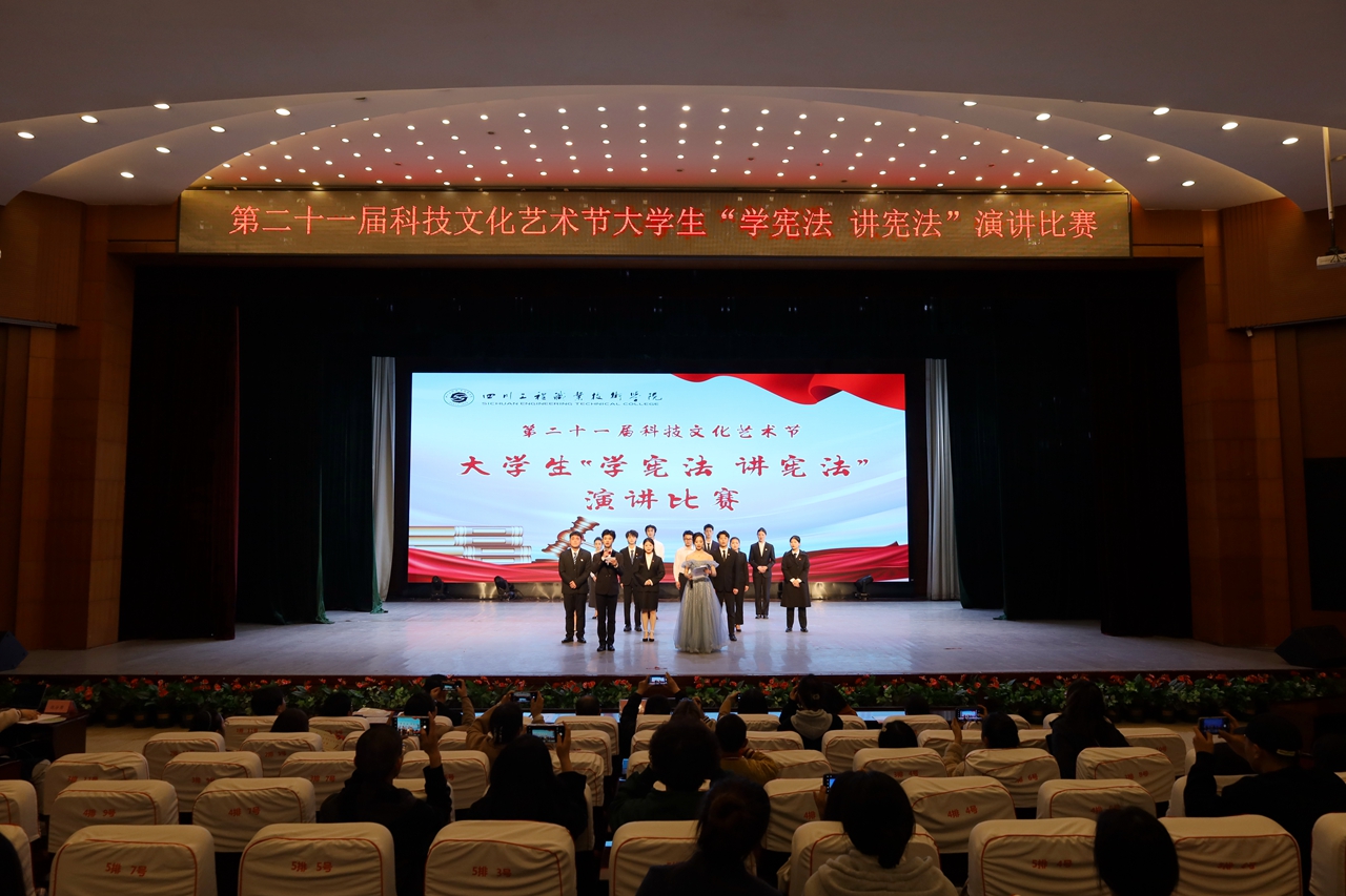 为进一步加强全校师生对法律知识的了解,普及法律知识,弘扬宪法精神,树立宪法权威,推动宪法教育进校园进课堂,2023年3月21日晚,我校第二十一届科技文化艺术节大学生“学宪法 讲宪法”演讲比赛在学校二教演讲厅如期举行。