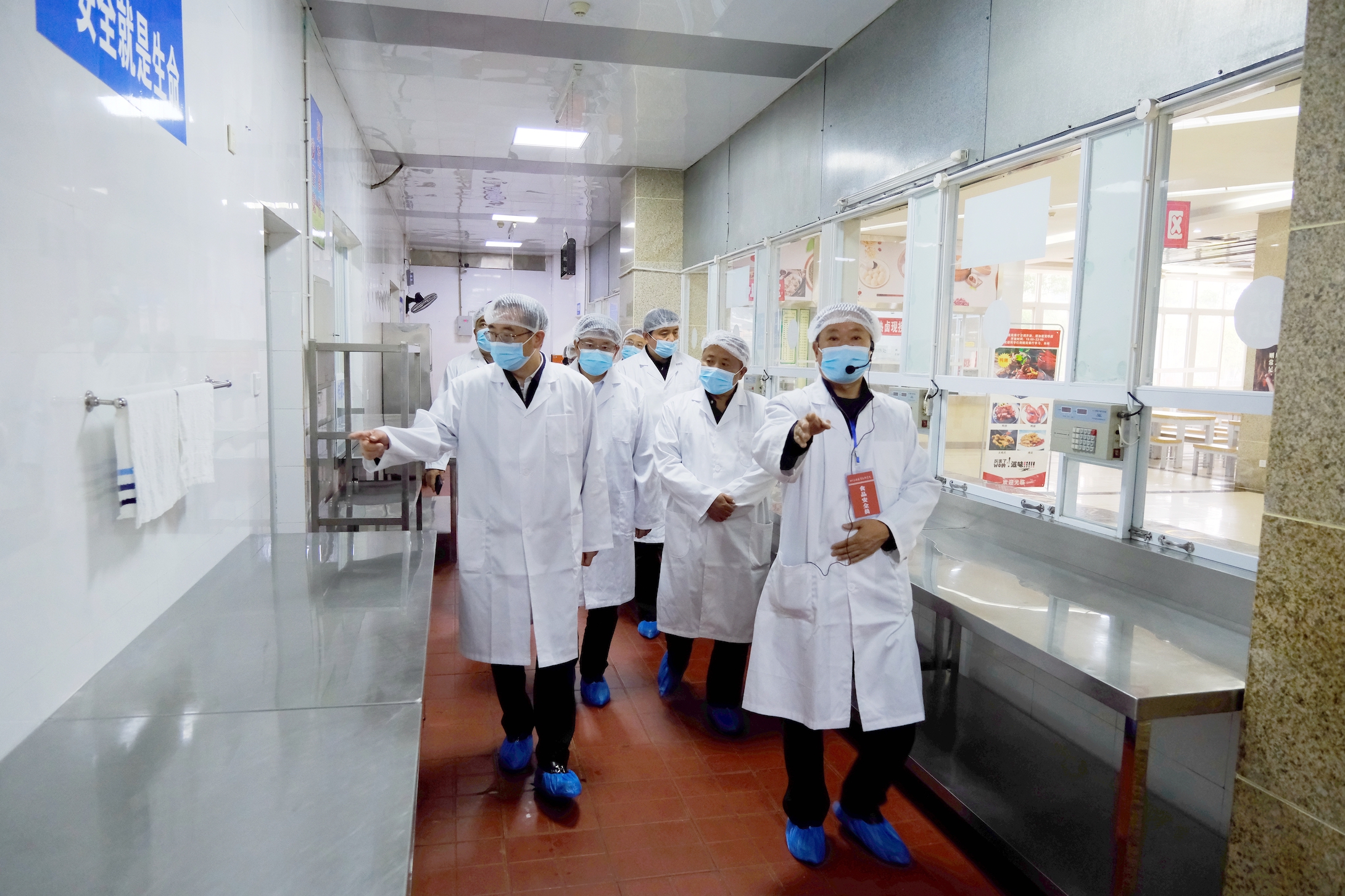 罗文全副书记一行深入学校南区桃苑餐厅后厨,对食品安全保障相关措施、落实“日管控、周排查、月调度”等情况进行了实地督查,并听取了学校后勤服务中心负责人叶靓就食品原材料招标采购、进货查验台账、索票索证、食品加工过程、售卖、留样以及落实“两个责任”等方面情况的现场汇报。