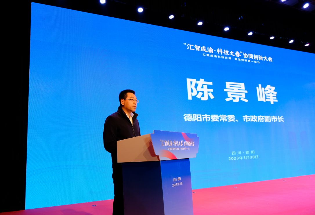 陈景峰发表了热情洋溢的致辞,指出汇智平台德阳中心已正式运营,在争取科技项目、汇聚多领域专家人才等方面取得阶段性成效,有力推动成德绵协同创新共同体建设,融合创新成果丰硕。期待川渝两地在创新资源共通共用、创新平台共建共享、创新成果精准对接等方面开启更多新的合作。