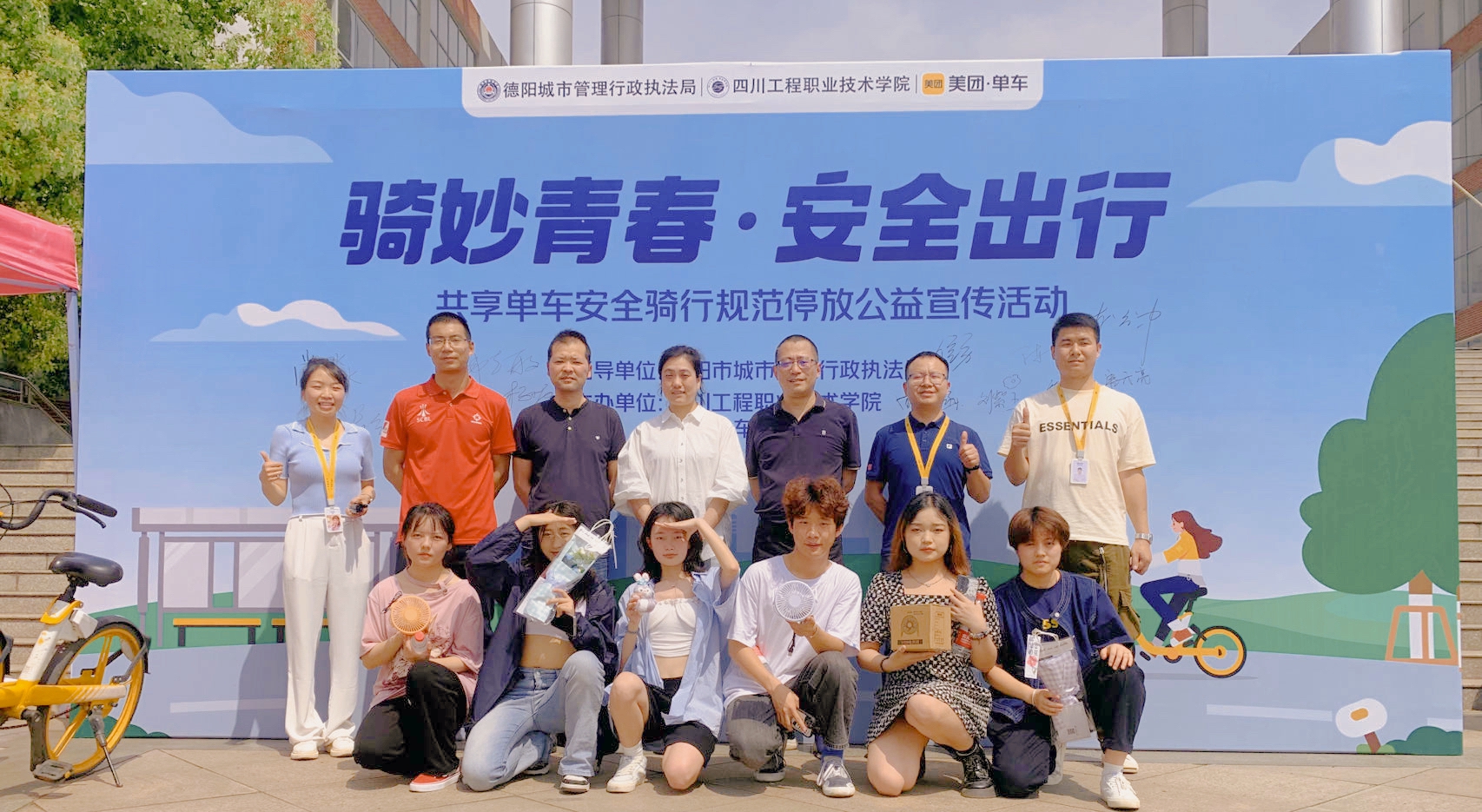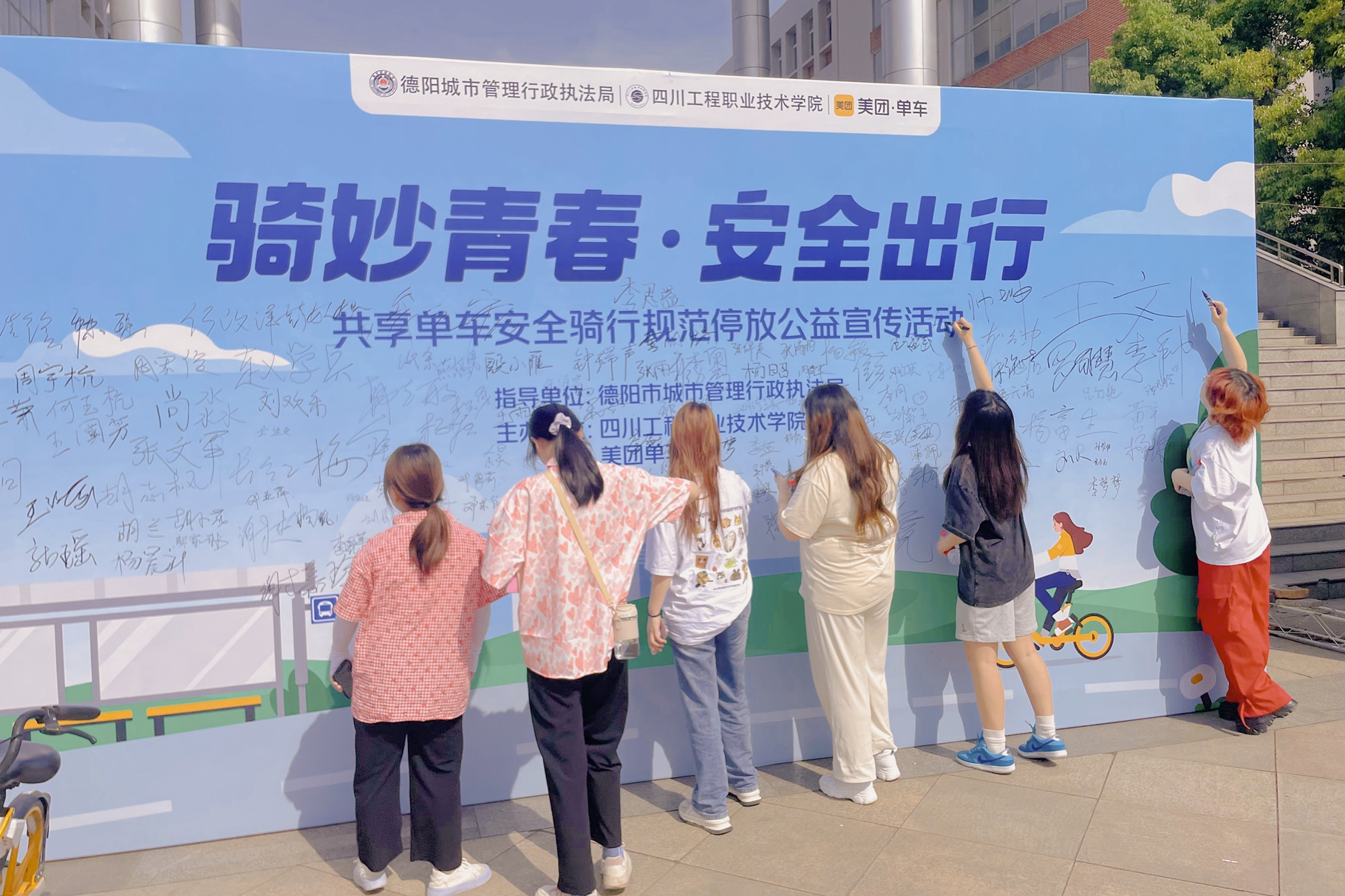 4月18日下午,在五教广场开展主题为“骑秒青春,安全出行”活动,德阳市城市管理行政执法局、美团单车、蒙南社区到场宣传道路安全,校园骑行安全。近300名师生到场,签名承诺:“一车一人,不载他人,靠右骑行,礼让行人,爱护单车,按序停放”