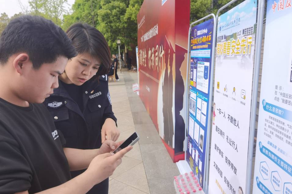 4月11日下午,在五教广场开展主题为“反诈、反恐、反邪教”宣传活动,全校师生踊跃参与,保卫处给各院系发放安全宣传月宣传资料,派出所民警、社区网格员、保卫处干事为到场师生现场讲解宣传政策,组织到场师生进行中国反邪教网上签名。