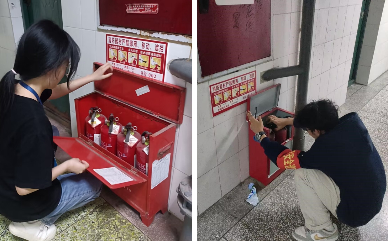 4月16日晚9:00,学生治保会、宿管会分别对学生公寓5、6、12、13栋进行了安全检查。本次检查主要对学生宿舍违规使用电器、私藏管制刀具、宿舍的消防设施设备等进行了重点清理和排查,共检查出违规电器13具,同时对各宿舍的灭火器、室内消火栓、应急照明、疏散指示牌进行了安全排查。