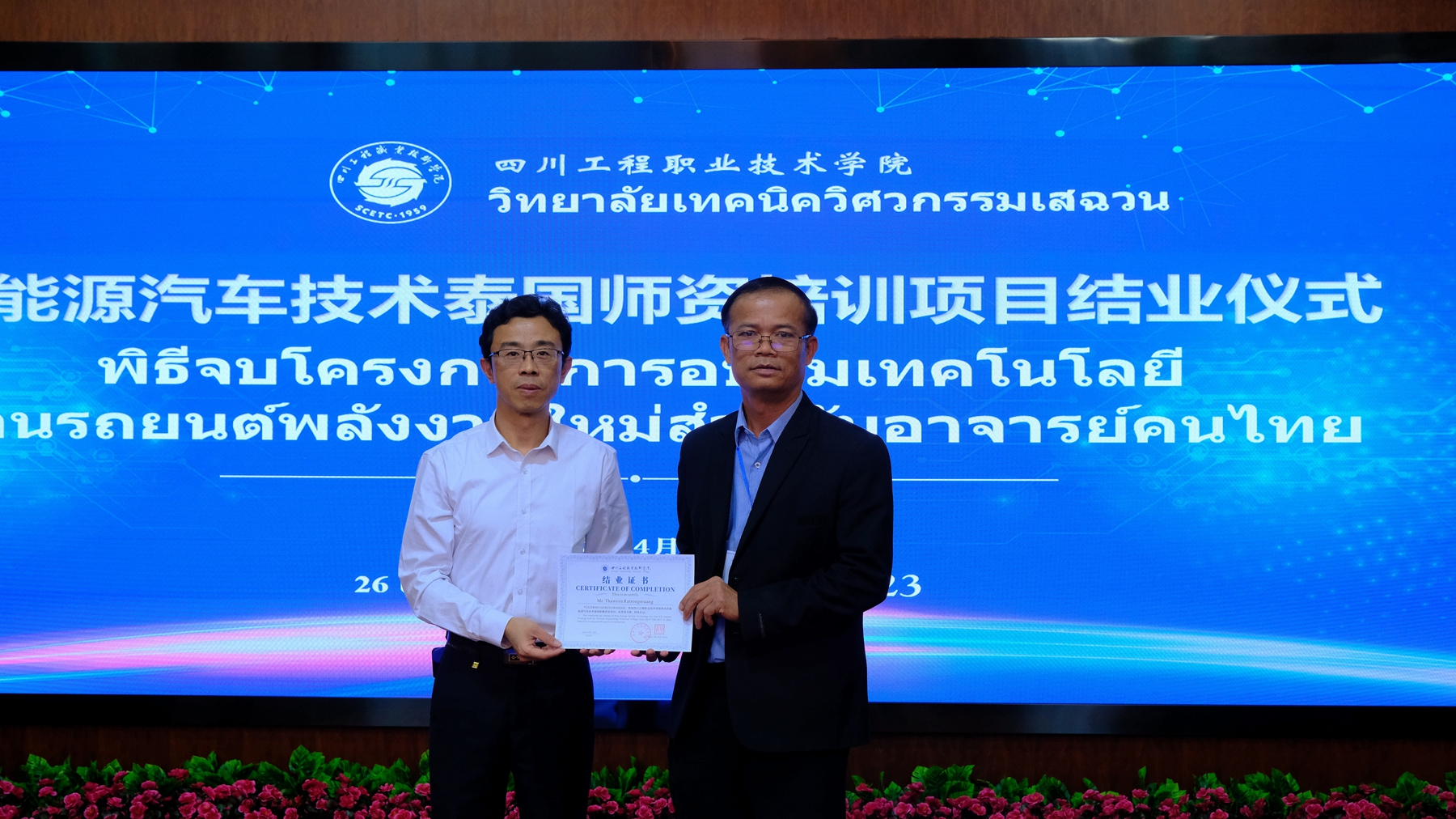 4月26日下午,2023年新能源汽车技术泰国师资培训班结业仪式在图书馆108会议室举行,学校党委副书记、院长肖峰出席仪式。