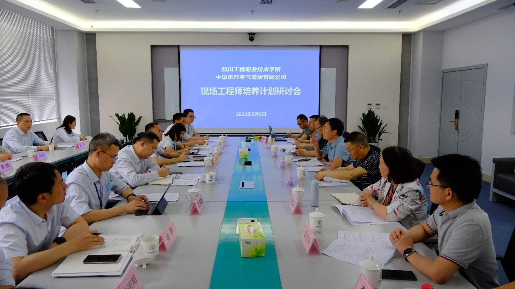 为加快落实教育部办公厅等五部门《关于实施职业教育现场工程师专项培养计划的通知》,推进现场工程师培养项目的实施,2023年5月5日,学校与中国东方电气集团有限公司联合召开了“现场工程师培养计划研讨会”。