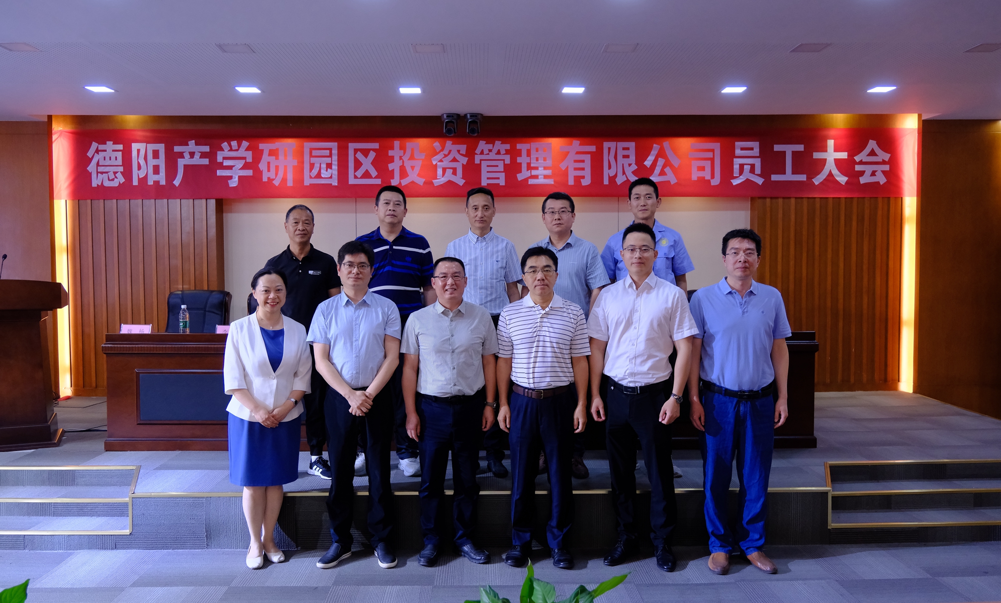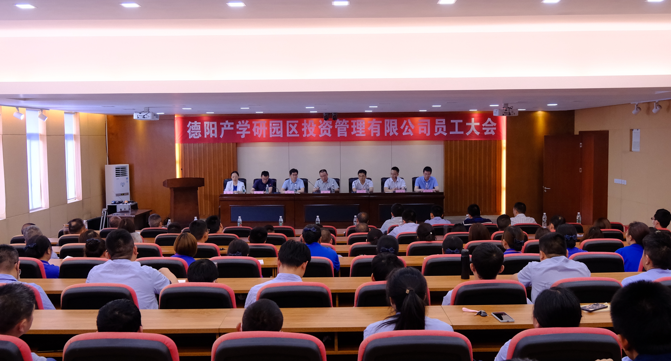 5月26日下午,德阳产学研园区投资管理有限公司(以下简称“公司”)全体员工大会在学校六教一楼育成中心报告厅举行。学校副院长郭杰、公司总经理张杰、公司股东四川产业振兴发展投资基金有限公司(以下简称“振兴公司”)代表方石、王亚洲等出席会议。