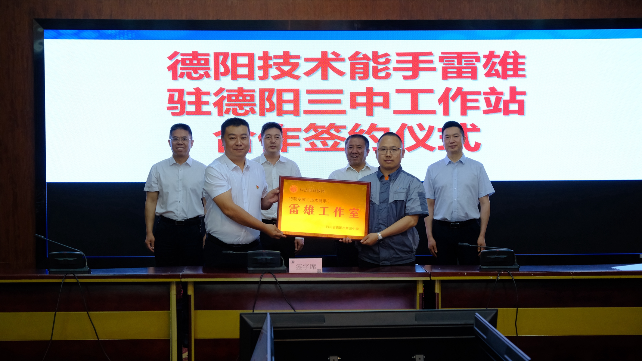 会上,学校与德阳三中签订了合作共建科技高中的协议,我校教师“四川工匠”任彦仰、“德阳技术能手”雷雄分别签订驻德阳三中工作站合作协议并进行了授牌。(文/党政办 图/党委宣传部)