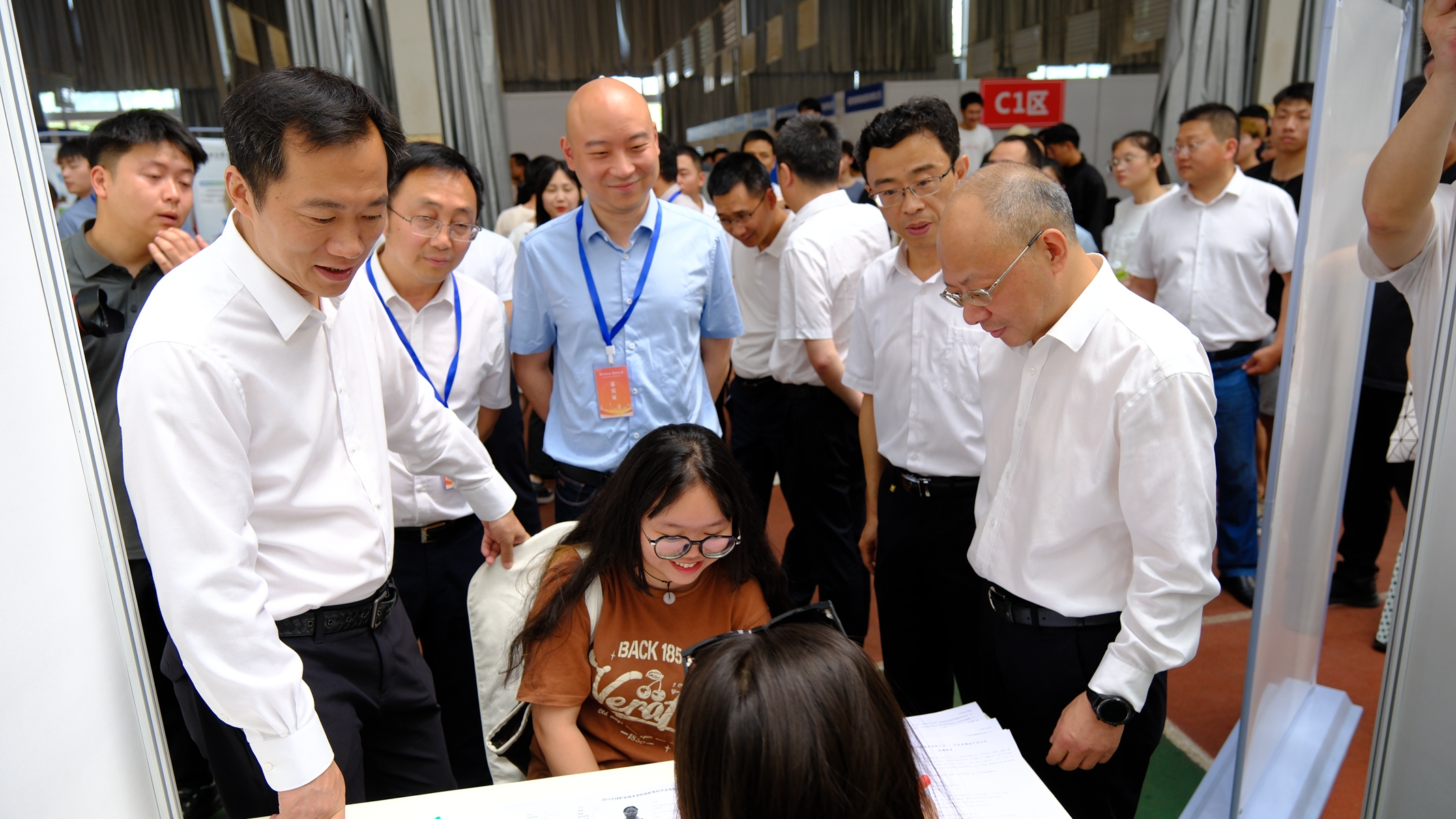 “专业对口吗?”“对岗位感兴趣吗?”“岗位发展空间大吗?”……在招聘会现场,戴作安来到四川长虹电器股份有限公司的点位,认真查看四川工程职业技术学院学生杨帆的简历,并详细了解企业用人需求和学生就业需求等情况。