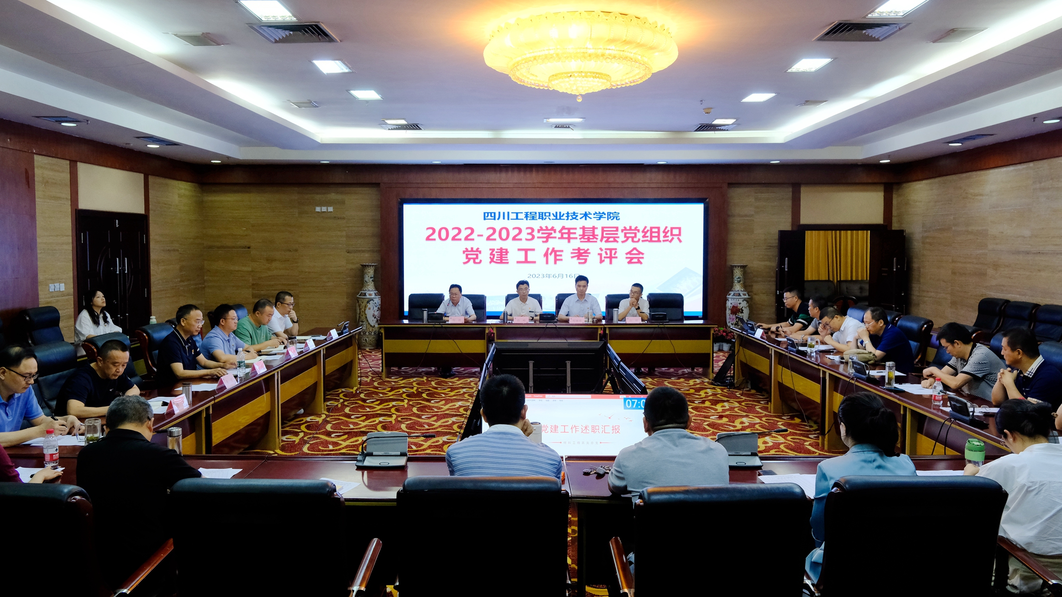 2023年6月16日下午,学校2022/2023学年基层党组织党建工作考评会在图书馆108会议室举行。学校党委副书记、院长肖峰,党委副书记、纪委书记郑辅春,党委副书记倪波,党委常委、副院长向桢,各部门负责人与各基层党组织书记参加了会议。会议由党委副书记倪波主持。