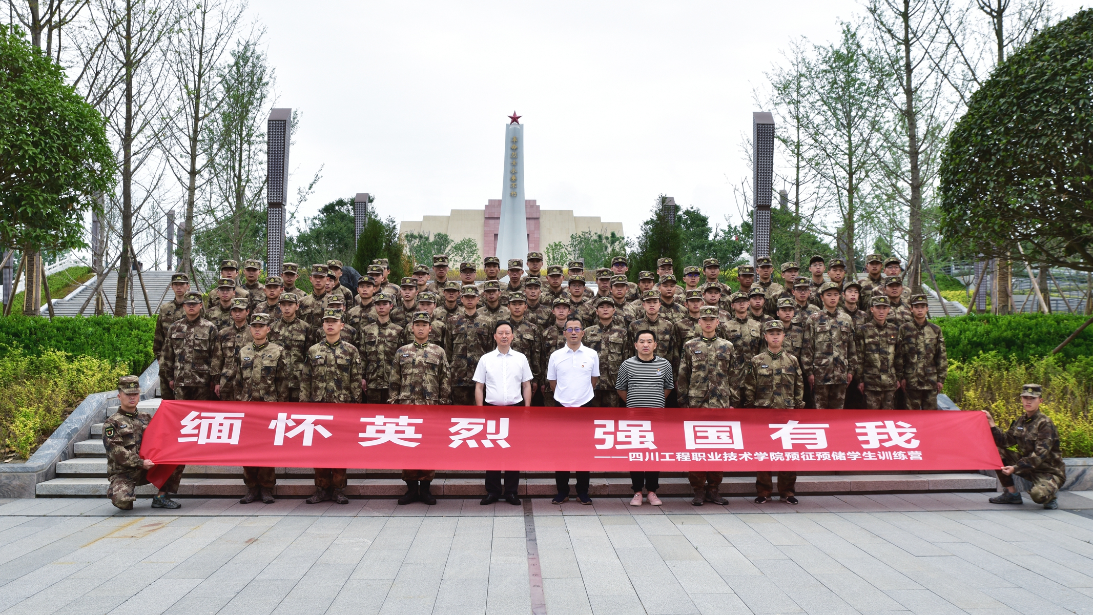为缅怀英烈功绩、继承英烈遗志、弘扬英烈精神,进一步增强使命感、激发奋斗力,培植爱国情怀,2023年6月17日上午9时,校党委武装部组织我校预征预储学生训练营72名学员在德阳市英烈纪念园开展“缅怀英烈 强国有我”活动,德阳市退役军人事务局党组成员、退役军人服务中心主任欧阳俊杰,校党委武装部部长侯勇参加本次活动。