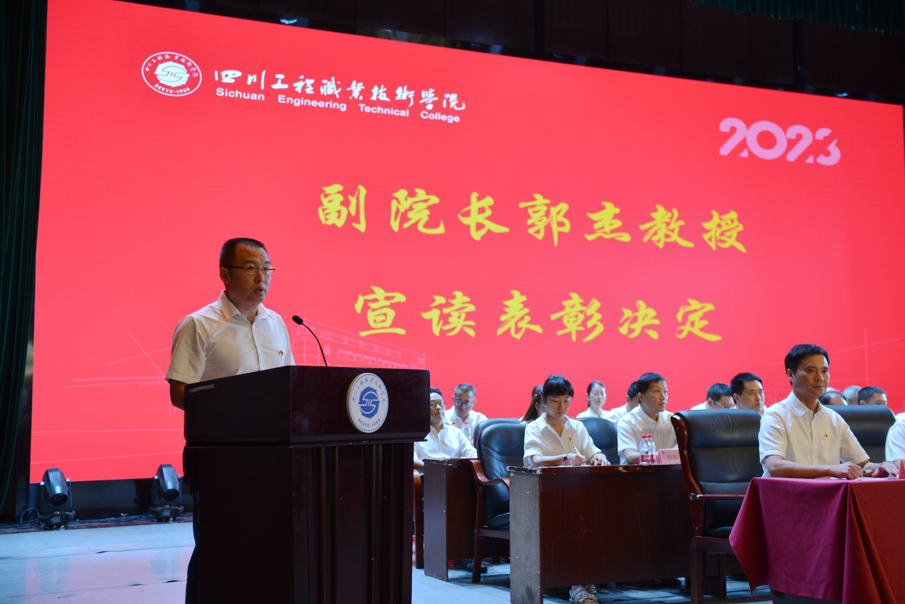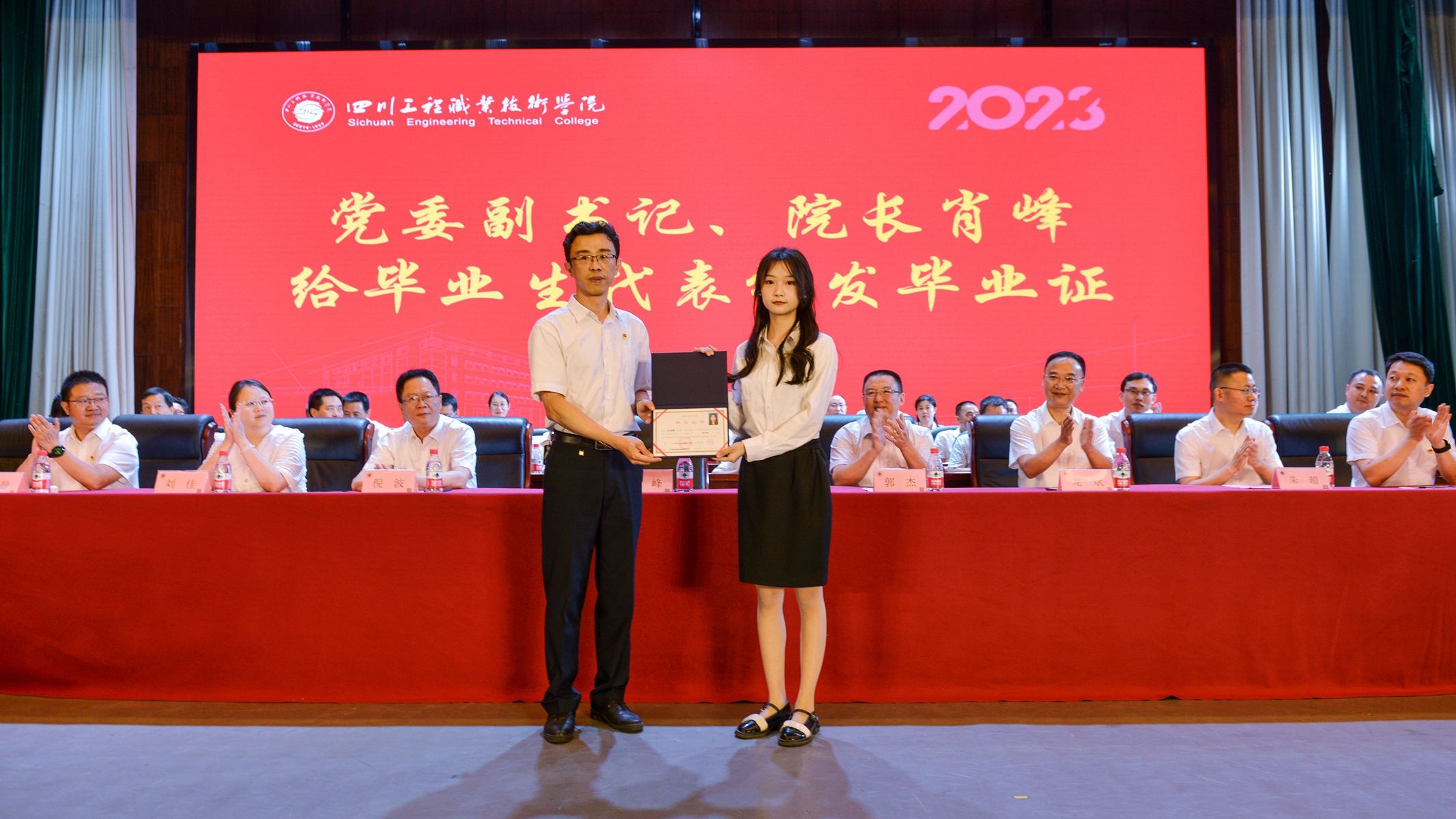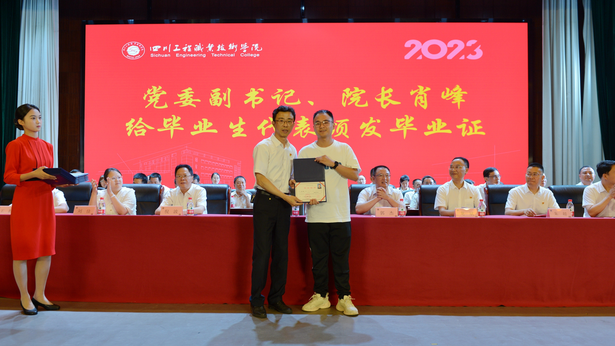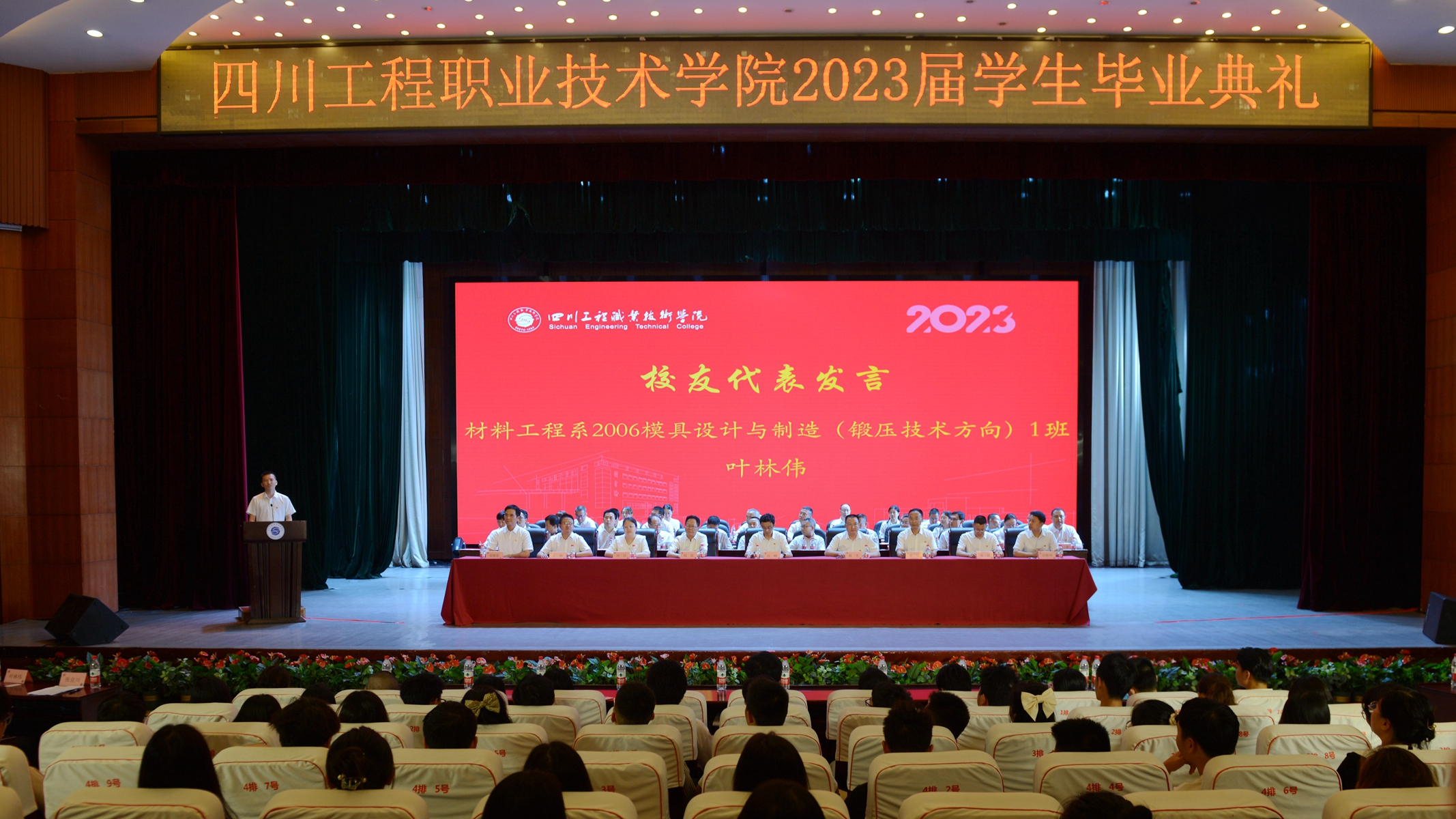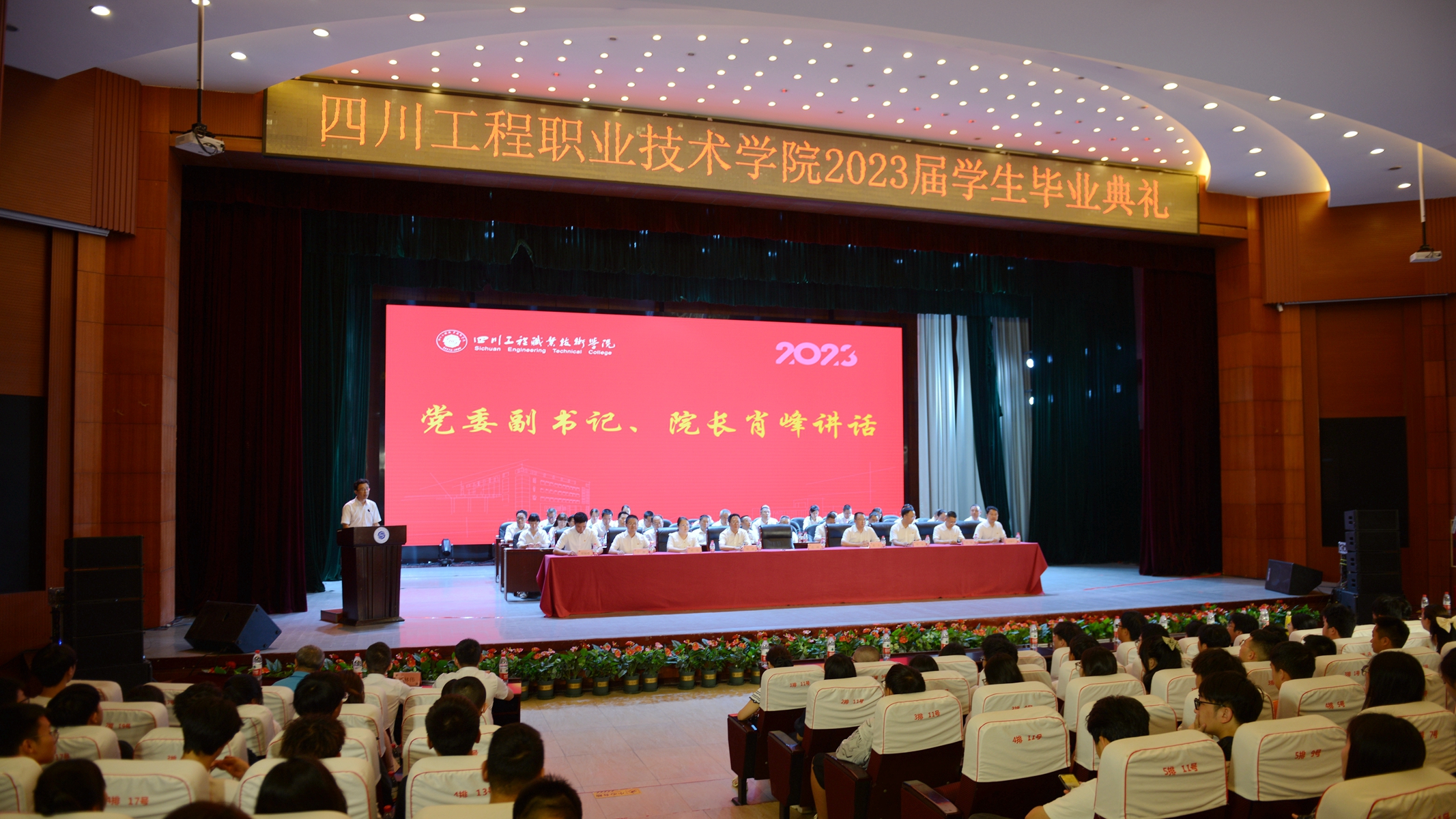 6月30日上午,四川工程职业技术学院2023届学生毕业典礼在二教演讲厅隆重举行。学校党委副书记、院长肖峰教授与其他在校的党委常委、校领导,各院系主任书记、相关职能部门负责人、教授代表、班级导师代表、辅导员老师代表,以及应邀专程参会的家长代表、校友代表、2023届毕业生代表等出席毕业典礼,共同见证2023届毕业生的毕业盛典,欢送工院学子踏上人生新征程。毕业典礼由学校党委副书记、纪委书记郑辅春主持。