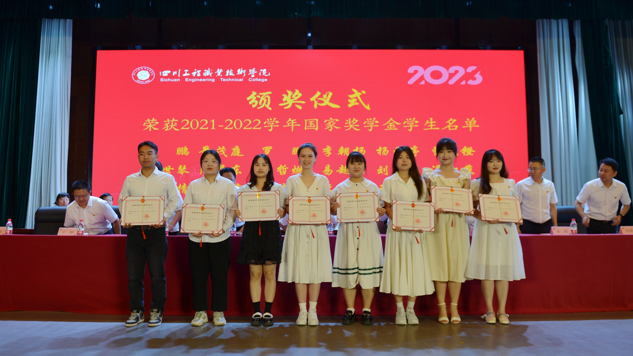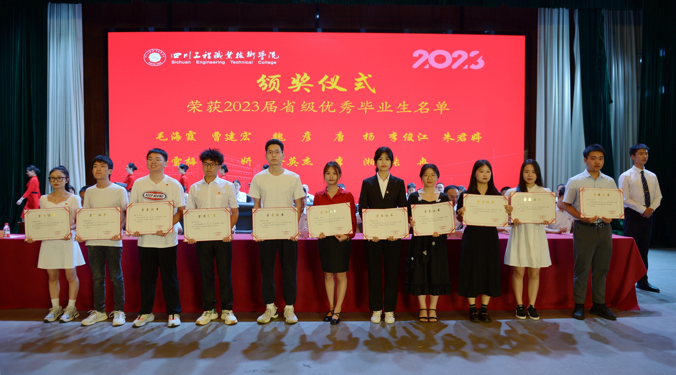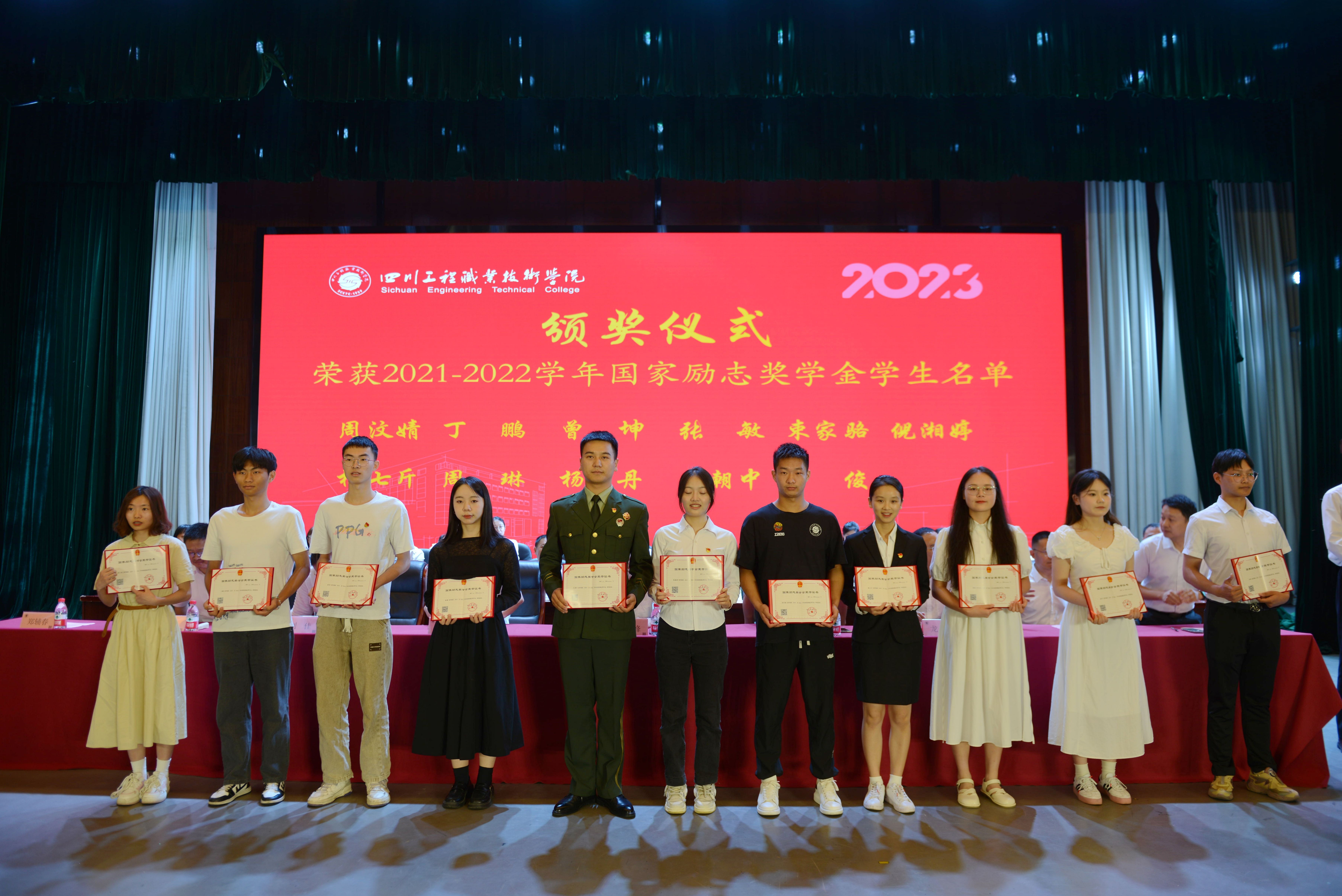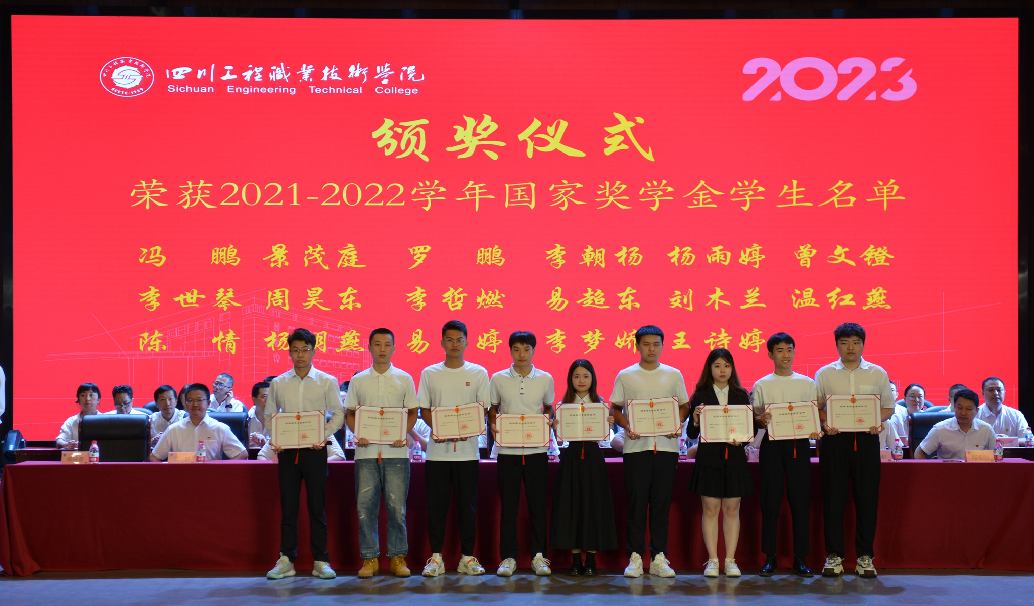 上午10:00,全体肃立,庄严雄壮的国歌奏唱响彻会堂。副院长郭杰宣读2021/2022学年国家奖学金、国家励志奖学金获得者以及2023届四川省普通高校优秀毕业生表彰决定,前排就坐的校领导、党委常委向先进个人予以表彰。