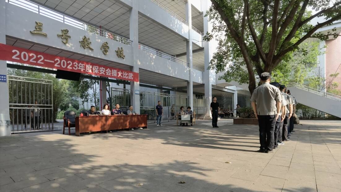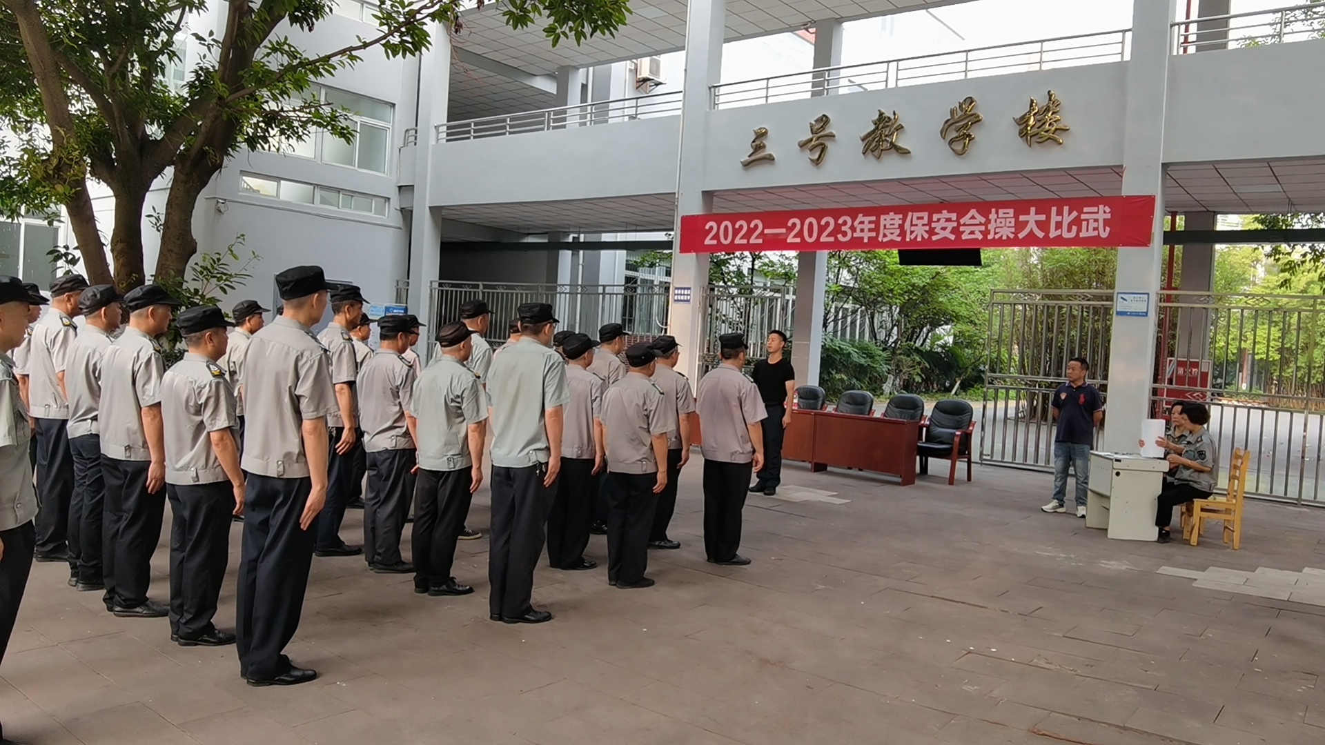 为提高保安队伍的整体素质,切实增强保安队伍的战斗力和凝聚力,树立学校保安品牌形象,7月9日上午,学校保卫处在三号教学楼东面广场组织保安进行了2022-2023年度保安会操大比武。