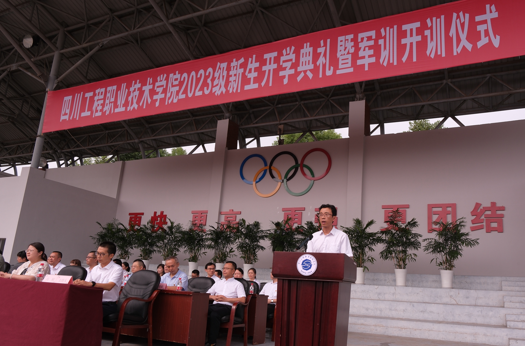 典礼伊始,学校党委副书记、院长肖峰代表学校党委和全校师生向2023级新生表示热烈欢迎和衷心祝贺。随后,肖峰院长与同学们分享了学校60余年来扎根西部大地,服务重装产业的艰辛历程和办学成就,并对新生提出三点期望:一是坚定理想信念,共筑家国情怀。希望同学们坚定理想信念,永远听党话,跟党走,继续肩负起光荣使命,胸怀“技能强国”梦想,在中华民族伟大复兴的道路上实现人生理想;二要坚持明辨是非,树立正确的价值观。慎思明辨,崇德修身,扣好人生的第一粒扣子;三要勤学善思笃行,锤炼过硬本领。把习近平总书记对四川的期待、对青年的期待化作前进的强大动力,惜时如金孜孜不倦,不断提高专业技能,锤炼品行情操,不断超越自我。