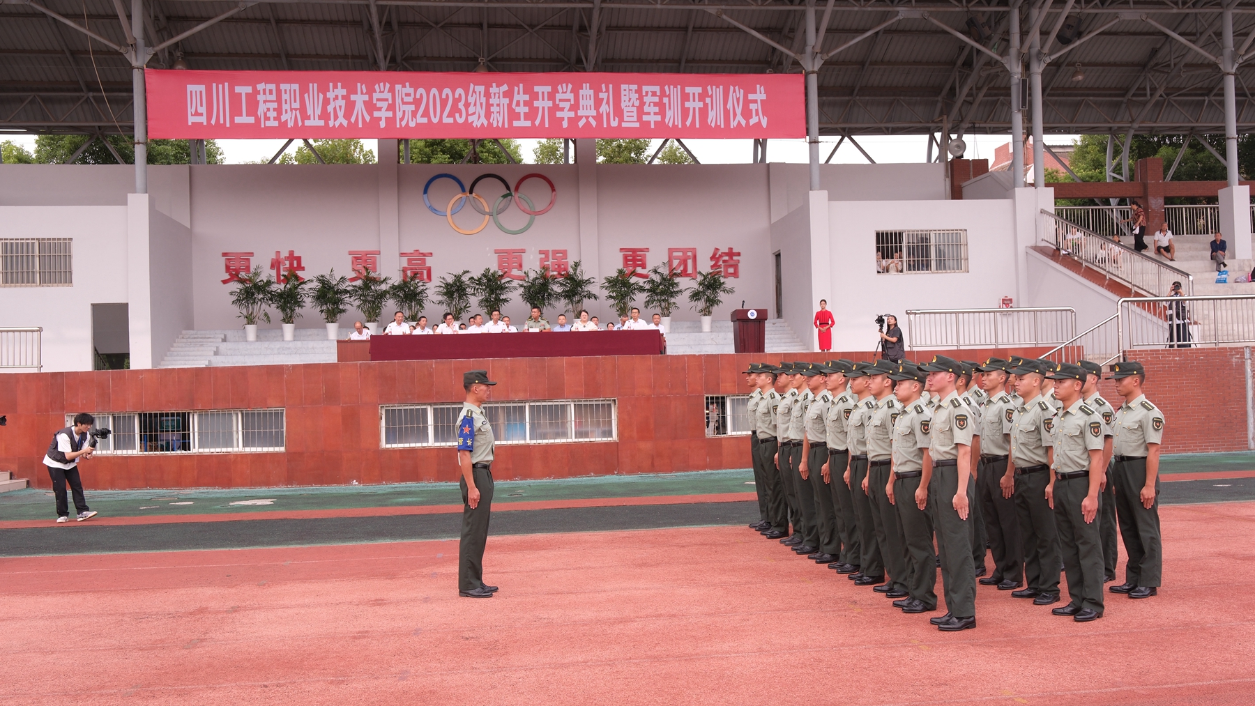 跨越山海,齐聚工院。9月15日上午10:00,学校2023级新生开学典礼暨军训开训仪式在庄严的国歌声中拉开序幕。恰同学风华正茂,3200余名朝气蓬勃的青年学子身着戎装,在体育场整齐列队、满怀期待。全体在校领导、党委常委、各教学院系和有关部门负责同志参会。典礼由学校党委常委、副院长向桢主持。