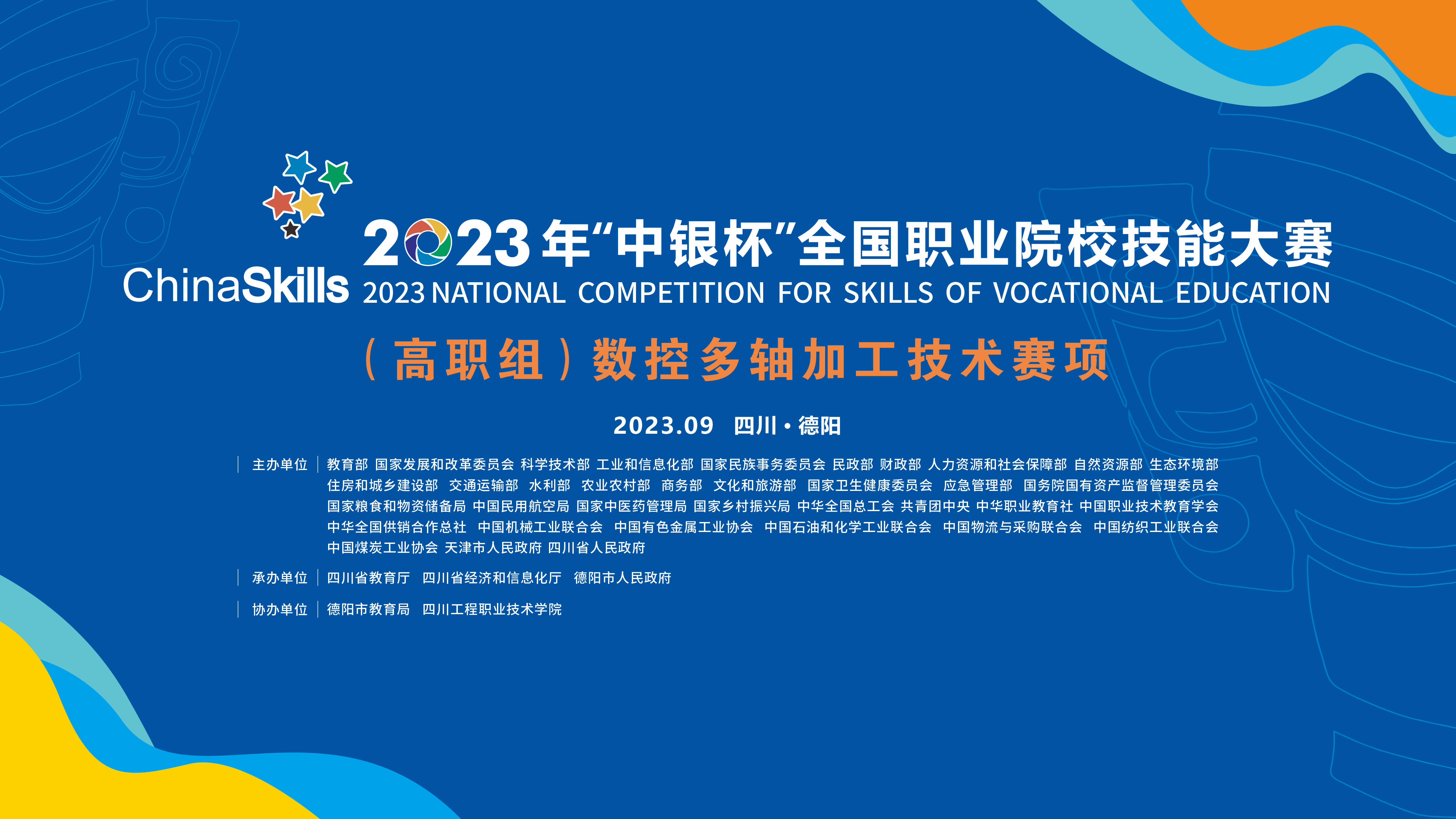9月24-27日,由教育部牵头发起,联合多家部委、事业组织、四川省人民政府主办,四川省教育厅、四川省经济和信息化厅,德阳市人民政府共同承办,德阳市教育局和四川工程职业技术学院协办的2023年“中银杯”数控多轴加工技术赛项将在四川工程职业技术学院举行。来自全国28个省(自治区、直辖市)共55支代表队将齐聚德阳同台竞技,展现新时代技能人才风采。