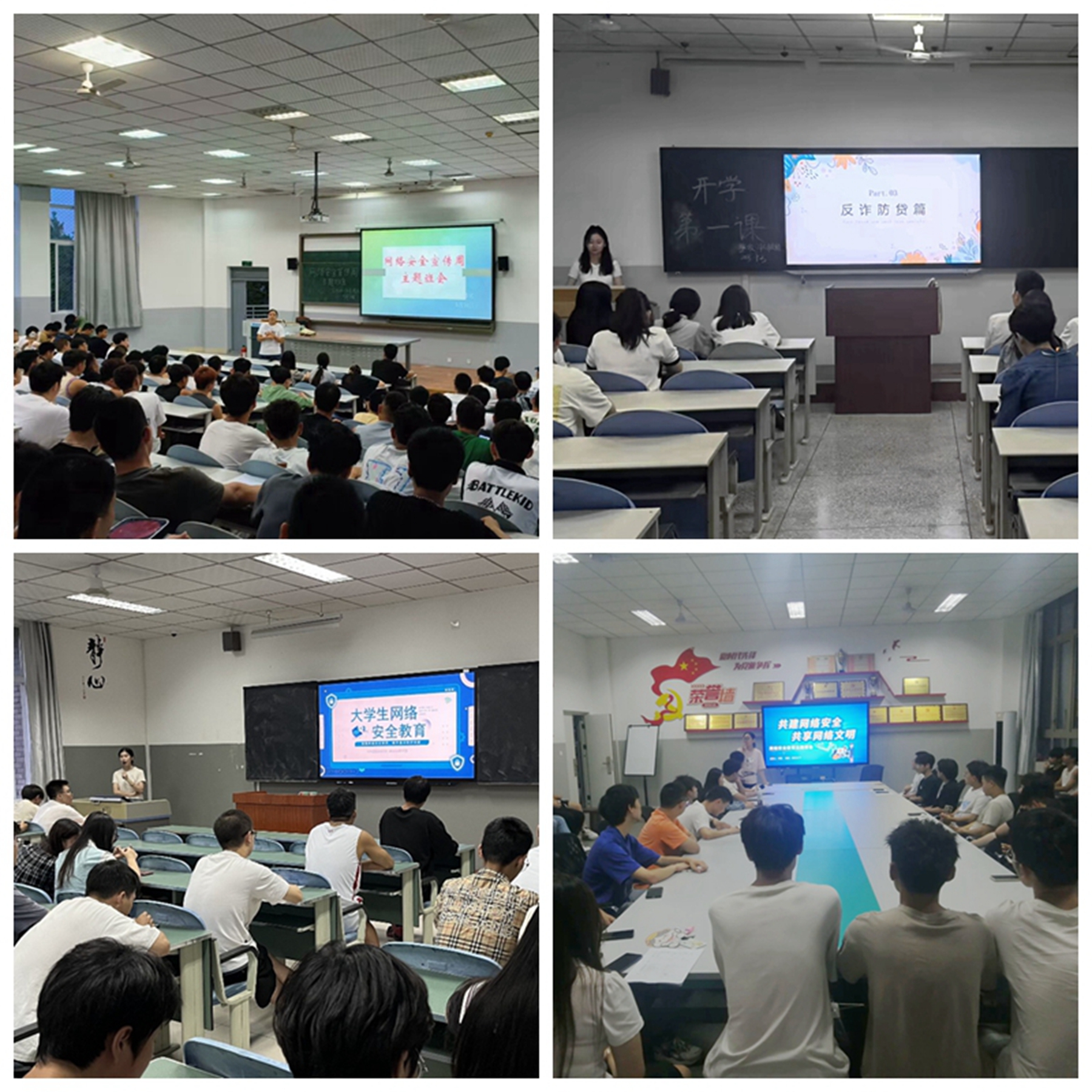 召开主题班会是学校进行网络安全宣传教育的主要途径。除此之外,各院系还结合具体实际情况进行了其他形式的网络安全宣传活动,并取得了良好的宣传效果。其中,交通系各班开展网络安全有奖知识竞赛,提高了师生网络安全防护技能;健管系各班开展铺排会议,鼓励学生充分利用“学习强国”“中国大学生在线”等学习平台资源充实自身;经管系各班学生通过分享自身的亲身案例,让大家增长了国家安全和网络防诈骗的相关知识;旅游系各班通过视频学习和课堂讲授的形式,增强了学生的网络安全防护意识;电气系各班观看网络安全视频,引导学生反思和讨论,让大家充分认识到网络安全的重要性;机电系组织师生集中观看微视频展映片和微课,让学生知晓网络安全的基本知识和应采取的防范措施;材料系各班组织学生讨论和交流,让学生警惕网络安全方面的主要问题及危害;外语系各班结合自己的专业,引导学生健康文明上网;基础教学部教师观看了“高校师生同上一堂网络安全课”,提高了教职工对网络安全的认知;马克思主义学院教师开展线上网络安全宣传教育活动,掀起网络安全学习热潮。