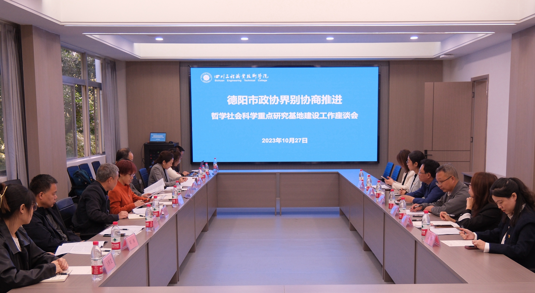 10月27日,德阳市政协界别协商推进座谈会在四川工程职业技术学院召开。市政协副主席罗春华,市政协常委、市社科联党组书记、讲师团团长罗继林,市政协文史委主任杨轻舒,市社科联党组成员、副主席郑燕平等一行13人到校调研哲学社会科学重点研究基地建设工作情况。双方在马克思主义学院、新时代思想政治教育研究中心会议室座谈交流,学校党委副书记、新时代思想政治教育研究中心主任倪波和相关部门负责人参加座谈。会议由市政协文史委主任杨轻舒主持。