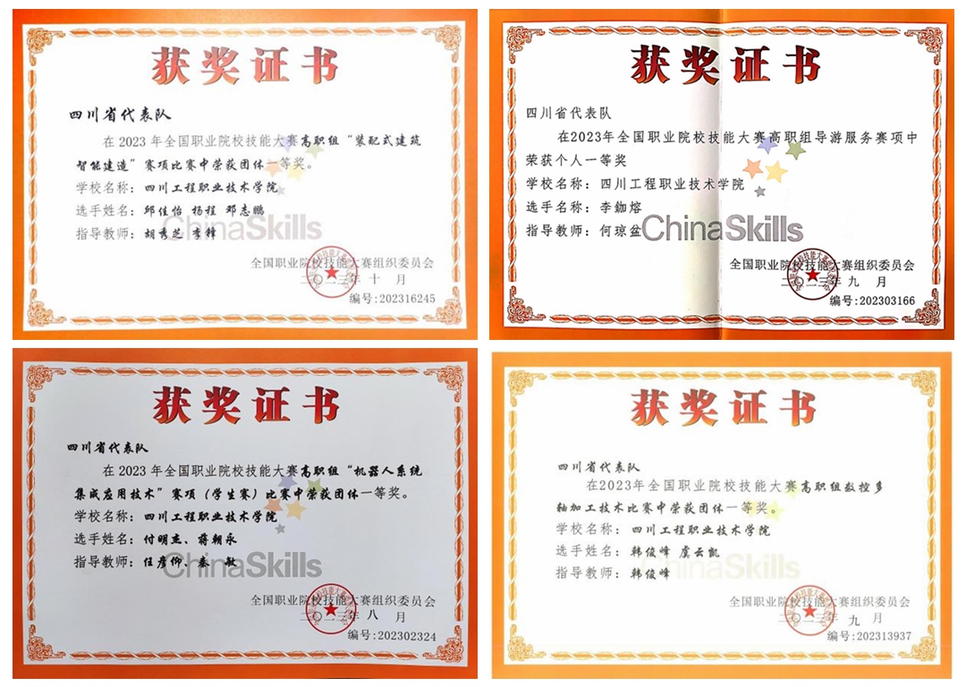2023年我校共有12支参赛队参加了由教育部主办的全国职业院校技能大赛。经过紧张的备赛和精彩的角逐,共取得了4个一等奖,1个二等奖,4个三等奖的优异成绩,其中数控多轴加工技术、机器人系统集成应用技术、导游服务和装配式建筑智能建造4个赛项获得一等奖,实现了我校在该项赛事上新的突破。