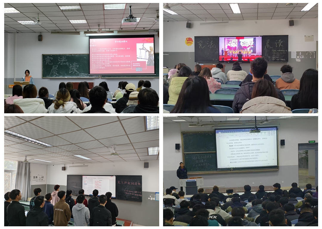 2023年12月4日是我国第十个国家宪法日。为深入学习贯彻习近平法治思想,增强学生宪法和法治意识,近期,我校各班级围绕“大力弘扬宪法精神,建设社会主义法治文化”,先后组织开展了“宪法晨读”和主题班会活动。