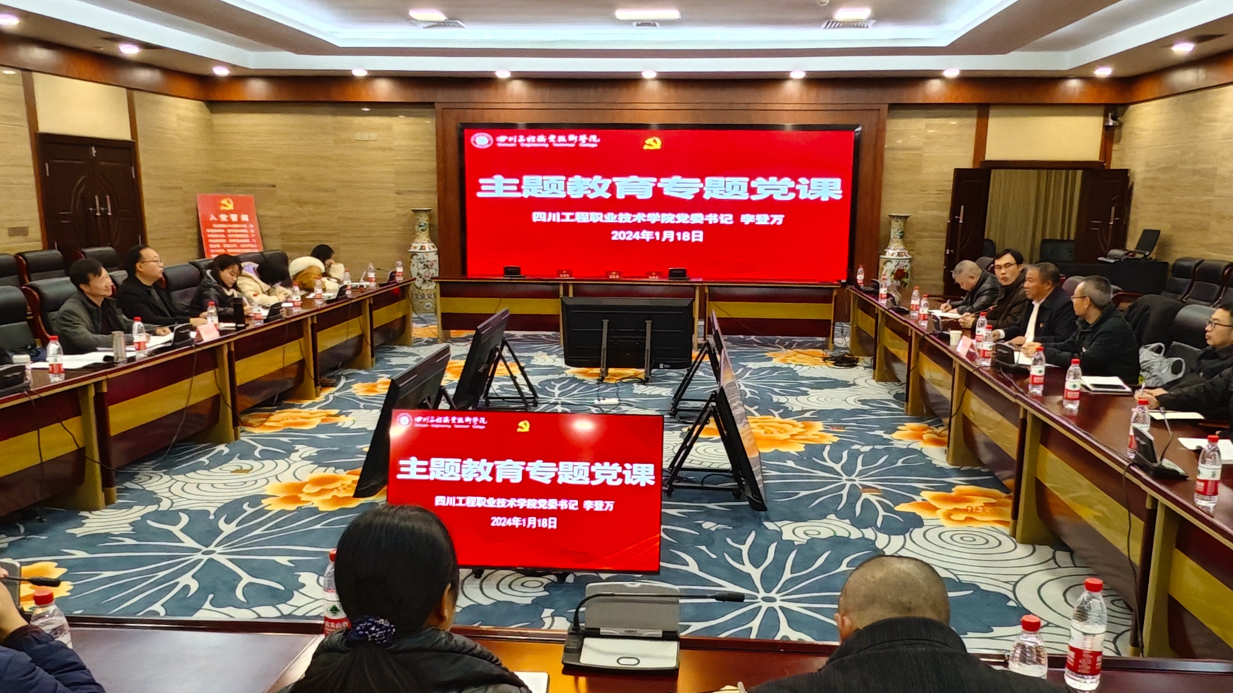 随后,学校党委书记李登万为全体党员上主题教育专题党课。李书记结合主题教育,讲述了学校的历史发展沿革。建校60余年来,学校始终牢记党的嘱托,与重装企业唇齿相依、风雨同舟,坚持体制机制模式创新,形成了“校企合作、工学结合”的人才培养模式;坚持产教融合,构筑技术创新服务平台,探索出制造业“1221”和产学研一体化“1331”人才培养模式,先后两次获得国家级教学成果一等奖。