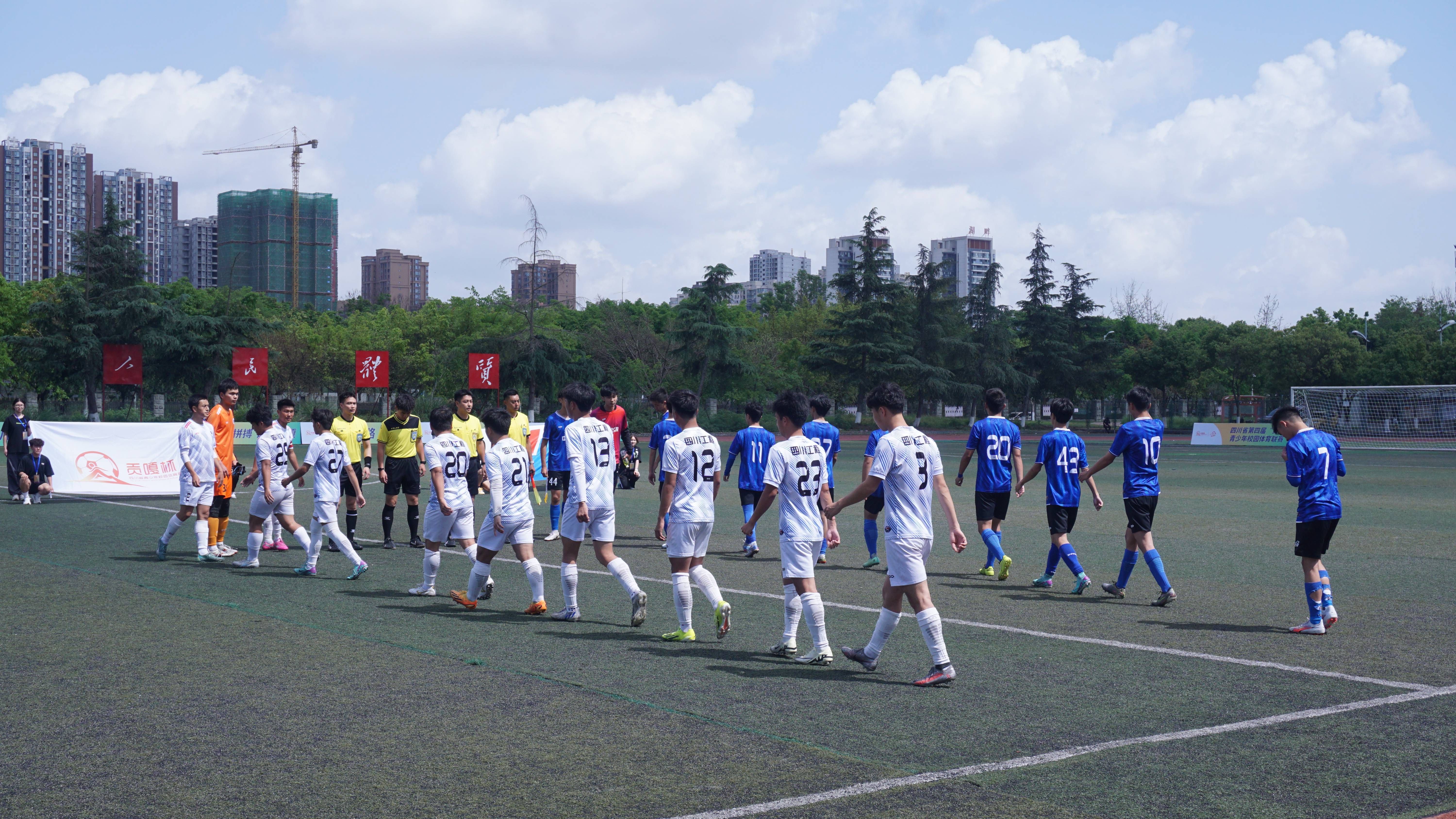 4月22日下午,由四川省教育厅、四川省体育局、共青团四川省委主办的四川省第四届“贡嘎杯”青少年校园体育联赛男子足球半决赛新利网上登陆主场迎战中国民用航空飞行学院的比赛圆满完赛。李登万、向守兵等校领导亲临现场督战,为队员们加油打气。