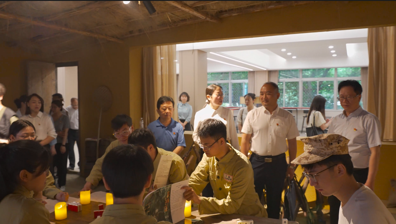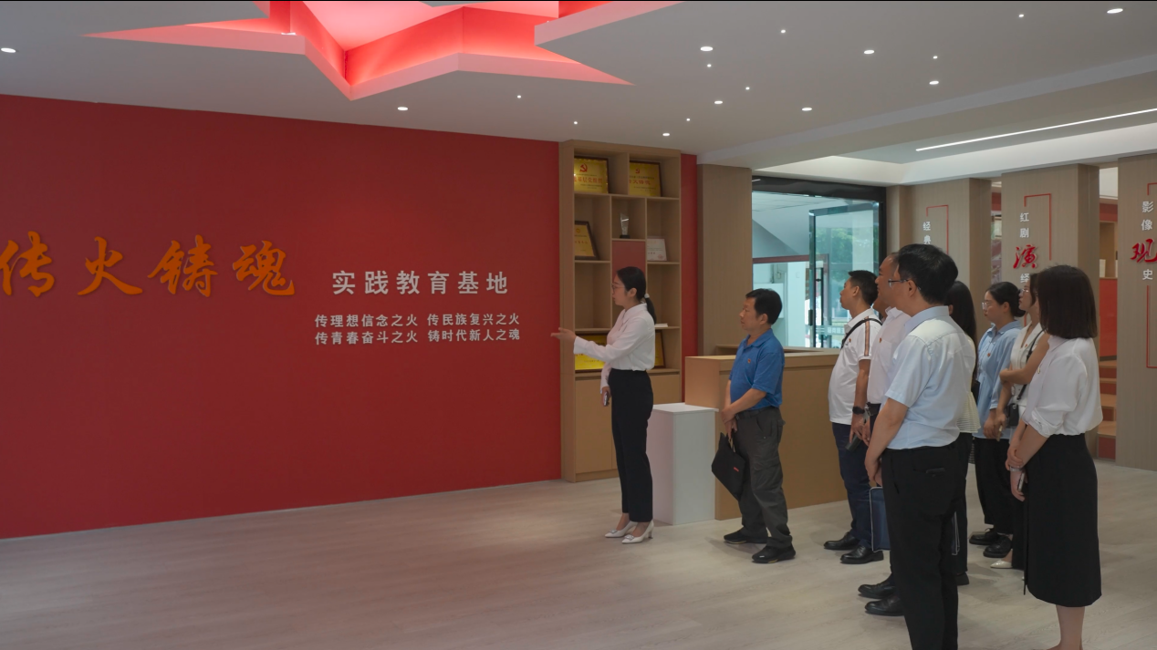 四川工业科技学院党委副书记杨朋一行,首先参观了我校马克思主义学习教育阵地。我校马克思主义学院主持工作副院长杨雅涵介绍了学院文化长廊、“传火铸魂”实践教育基地、智慧教室、模拟法庭以及平台开展实践育人等情况。大家在实践教育基地一起观看了正在排演的《重装报国》行进式舞台剧。