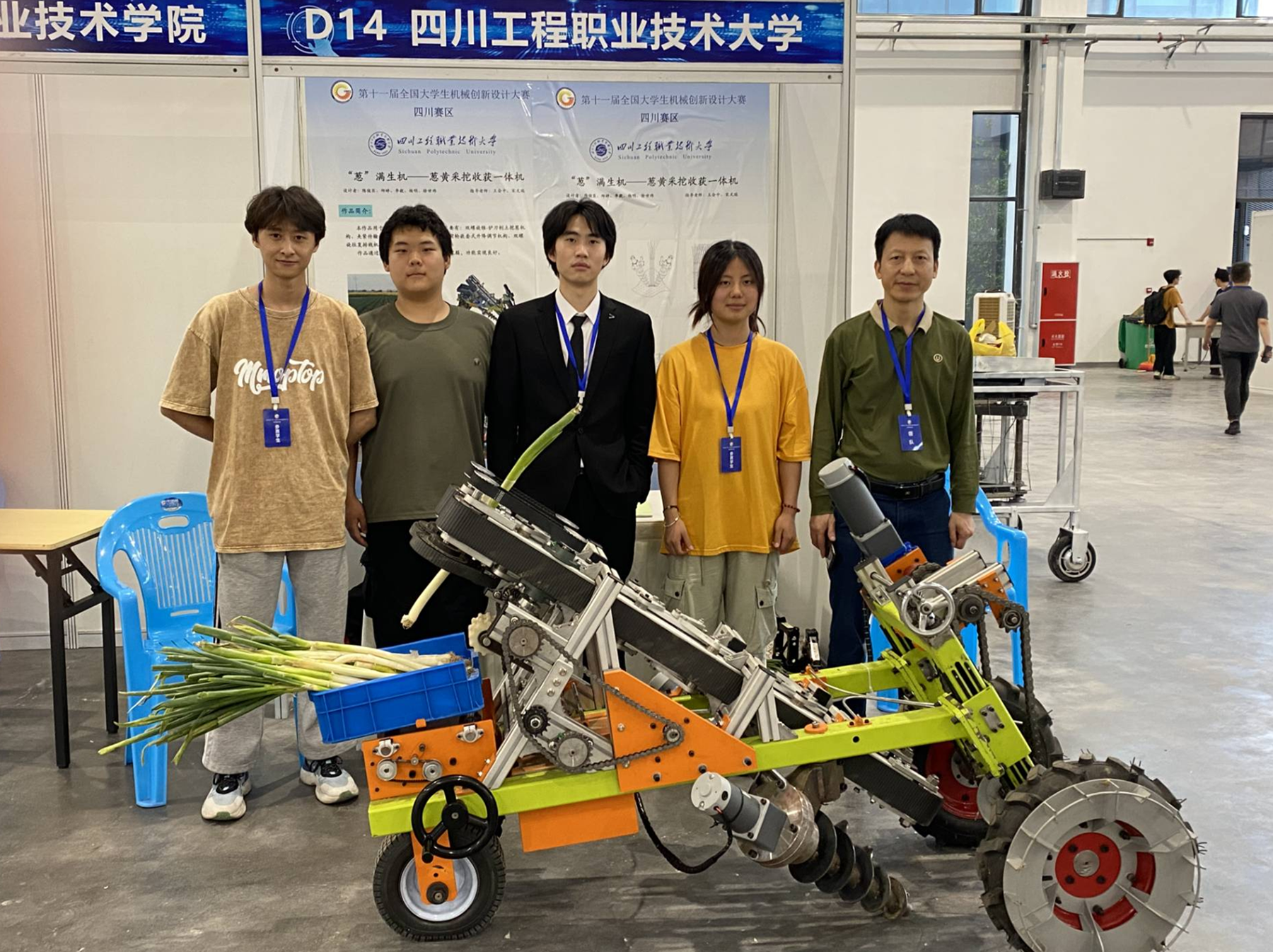 比赛过程中,经过现场作品展示与问辩、分组答辩、专家评审等环节,我校参赛团队沉着应对、表现出色,充分展现了良好的创新设计意识、综合设计与制造能力及团队协作精神,展现了我校学子的无穷创造力与蓬勃朝气。最终,经过层层比拼,“‘葱’满生机——葱黄采挖收获一体机”“自走式播种机”两项作品斩获一等奖。