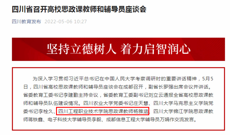 我校教师杨雅涵在四川省高校思政课教师和辅导员座谈会上作交流发言