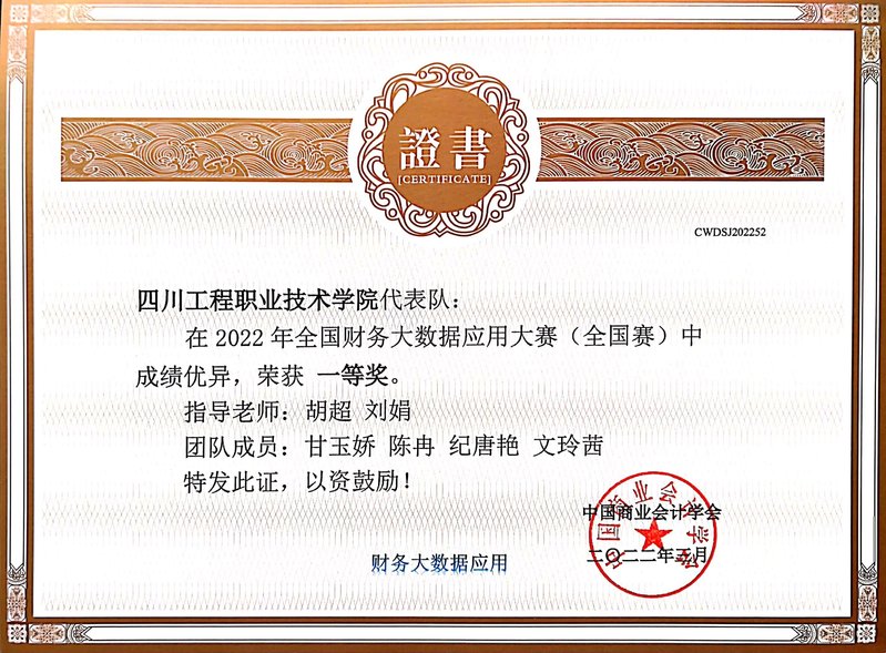 3月26日,2022年全国财务大数据应用大赛在云端举行。来自全国的近百支院校队伍,围绕财务大数据专业基础、财务大数据应用实践两个竞赛环节,展开了激烈角逐。最终,由我校20级会计专业的甘玉娇、陈冉、纪唐艳、文玲茜四名同学组成的竞赛团队荣获全国一等奖。这是我校会计专业在数智化转型升级为大数据与会计专业后所参与的第一次大数据应用竞赛,对于检验和展示高职院校财会类专业基于新专业目录调整下的创新教学成果,探索会计教育教学改革新方向意义重大。