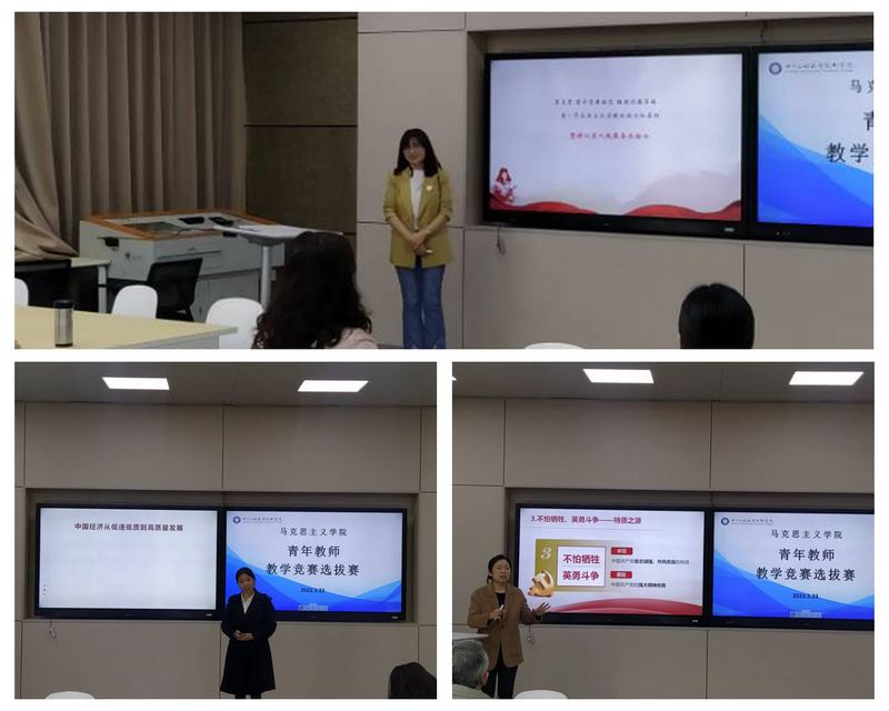 为进一步激发青年教师更新教育理念和掌握现代教学方法的热情,充分发挥教学竞赛推动教师队伍专业成长的示范引领作用,选拔优秀青年教师参加学校“2022年青年教师教学比赛”,3月23日,马克思主义学院在3B311智慧教室举办了“青年教师教学选拔赛”。