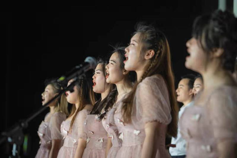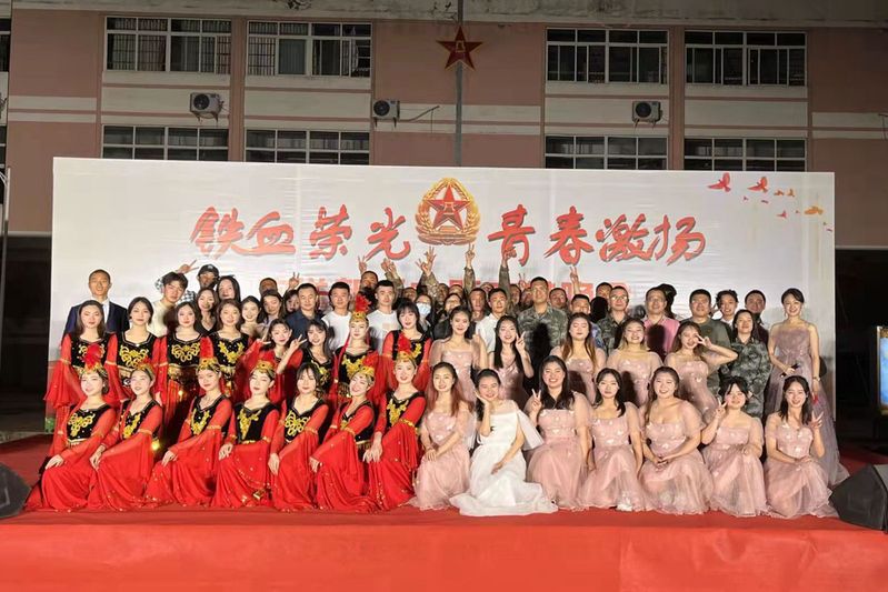 晚会后,同学们一起展望未来,祝愿所有的新兵同学们像鲲鹏一样展翅飞翔!(图/文 艺术系)