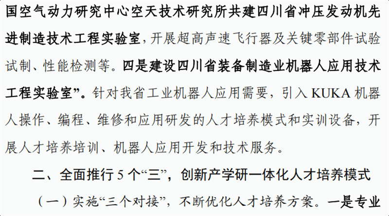 2022年1月26日,中共四川省委教育工作委员会办公室、四川省教育厅办公室编发的“对标竞进 争创一流”活动职教专刊第18期,以“扎根重装产业 深度产教融合,建设中国特色高水平高职学校”为题,对学校通过搭建高水平产学研育人平台,全面推行 5 个“三”,创新高素质技术技能人才、能工巧匠、大国工匠的培养模式进行了报道。 (四川工程职业技术学院发展规划处)