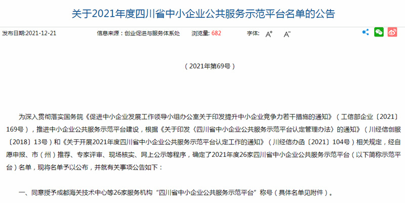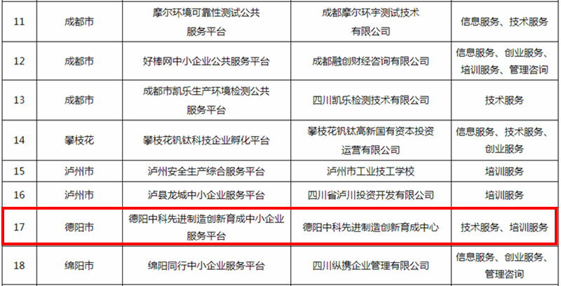 近日,德阳中科育成中心上榜“2021年四川省中小企业公共服务示范平台”名单。