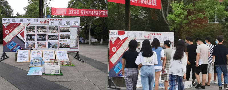 为丰富校园文化生活,增进同学们的文化交流,提高艺术素质,培养同学们的集体荣誉感,展现校园文化底蕴, 5月30日,2018级建筑装饰1、2班在五教广场举办了一场作品展览活动,展现校园文化建设,彰显校园风采。展览的作品有室内效果图展示和住宅模型展示,吸引了很多2020年报考我校学生的关注,分享这份属于四川工程职业技术学院的文化气息,增进参加单招考试的同学们对建筑装饰专业的了解。(文/图 建筑工程系)