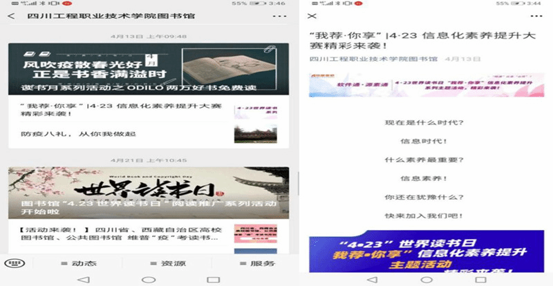 图书馆微信公众号宣传“我荐•你享”信息化素养提升大赛系列主题活动