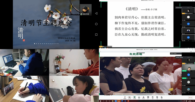 2020年4月4日,举国同祭,上下齐哀,从天安门到地方广场,从党中央最高领导人到普通群众,从繁华的街道到宁静的田间,大家深切哀悼抗击新冠肺炎疫情中的牺牲烈士和逝世同胞。我校外语系和机电工程系等召开主题云班会,通过视频分享、演讲、讨论等多种形式致敬战疫英雄,缅怀逝者同胞。