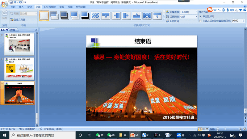 “感恩身处美好国度,活在美好时代!”2016(本科)材料成型及控制工程(焊接方向)1班网络班会