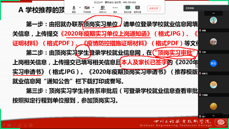 2017材料成型与控制技术1班全班43人参加会议,班主任老师利用网络平台讲解政策要点
