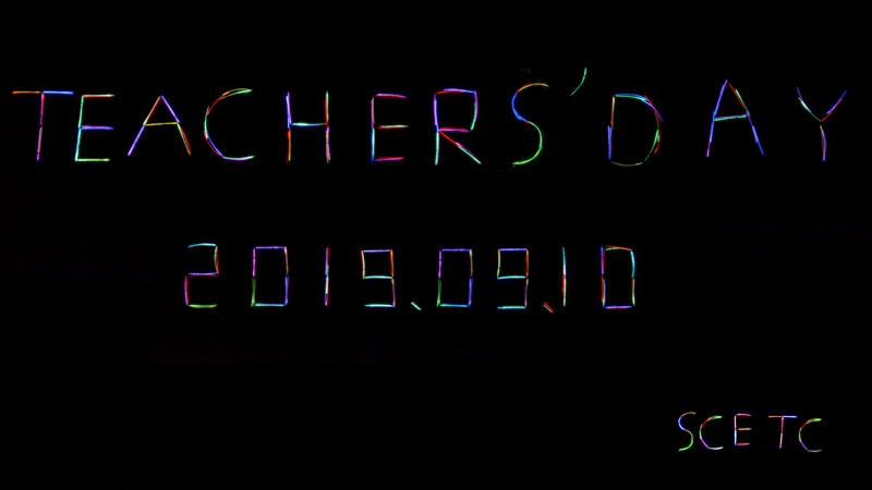 9月9日晚20:00,雨后微晴,几位同学正位于四川工程职业技术学院2号门口,用肢体语言认真书写着“20190910”“老师您好”,用独特的方式为教师亮灯。