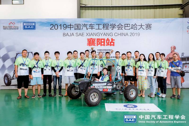 由中国科学技术协会指导,中国汽车工程学会和襄阳市人民政府主办的2019巴哈大赛于2019年8月13日至8月17日在湖北省襄阳技师学院(东津校区)正式开赛。本次大赛共有包括来自全国本科院校、职业院校、国外车队(印度孟买的Lokmanya Tilak Engineering Collegec)等在内的96支参赛队伍同台竞技。继2018年我校巴哈车队获得一等奖(季军)之后,2019年再接再厉,以760.89分的总成绩再次获得一等奖(亚军),各单项比赛排名均在前列,其中商业营销报告全国第一名。