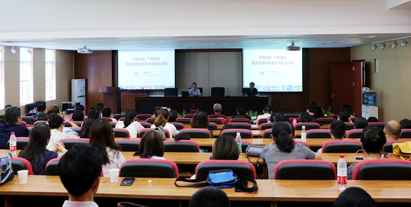 司徒渝教授以“开放创新 产教融合 建设中国特色高水平职业学院”为题,从高职面临的形势与任务、学校的办学优势与特色和学校“双高”建设的目标与任务三个方面作了精彩的讲解。司徒渝教授指出,全国教育大会的召开、国家职业教育改革实施方案、高职扩招、“双高”计划的实施,为职业教育的大发展提供了前所未有的机遇,一定要紧紧抓住机遇,迎接挑战,不断推进新时代职业教育实现高质量发展。司徒渝教授指出,扎根西部、服务重装、托举大国重器,立德树人、模式创新、奠基大国工匠成长之路,体制创新、产教融合、构筑技术创新服务平台,名师引领、结构优化、造就高水平双师队伍,鲜明体现了我校的办学优势与特色。针对学校“双高”建设,司徒渝教授强调,要以习近平新时代中国特色社会主义思想为引领,贯彻党的教育方针,落实立德树人根本任务,围绕制造强国等国家战略和四川“5+1”现代产业体系布局,走产学研一体化道路,实施高水平专业群建设计划,全面创新改革,打造装备制造技术技能人才培养高地、区域技术技能创新服务平台,将学校建成引领职教改革、支撑产业发展、中国特色鲜明,国际影响力大的高水平高职学校。司徒渝教授的精彩报告,赢得了近百名与会人员的热烈掌声,引起了强烈反响和共鸣。